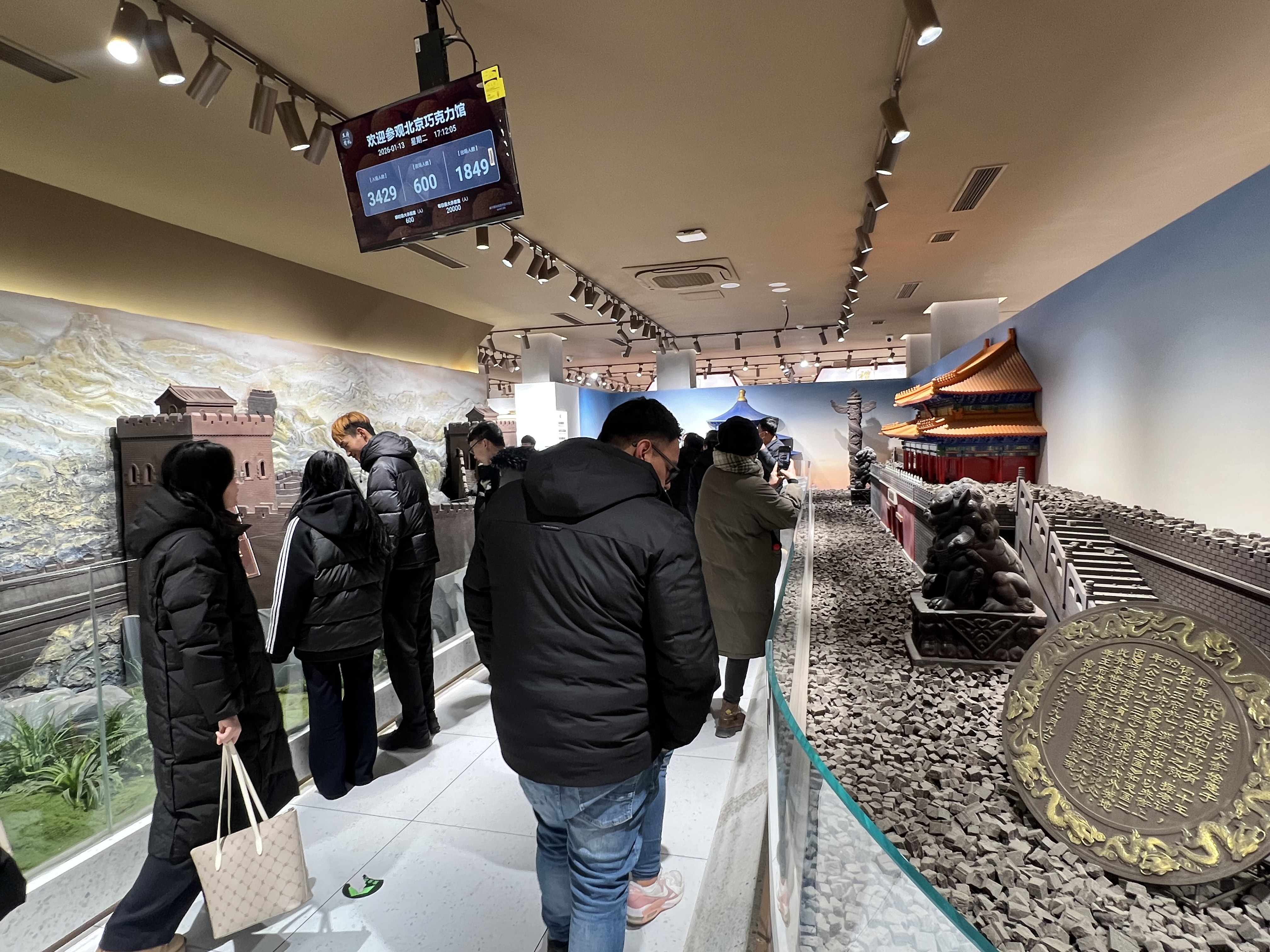 “这有一座巧克力长城!”“全是巧克力做的!”走进食品商场,映入眼帘的巧克力微缩景观让人不由得发出惊叹。只见巧克力制造出了万里长城、天坛祈年殿等地标性建筑的微缩景观,向里走去,还有以巧克力为原材料制作的著名画作、合欢瓶摆件、京剧脸谱和纸鸢,引得游人纷纷驻足拍照。