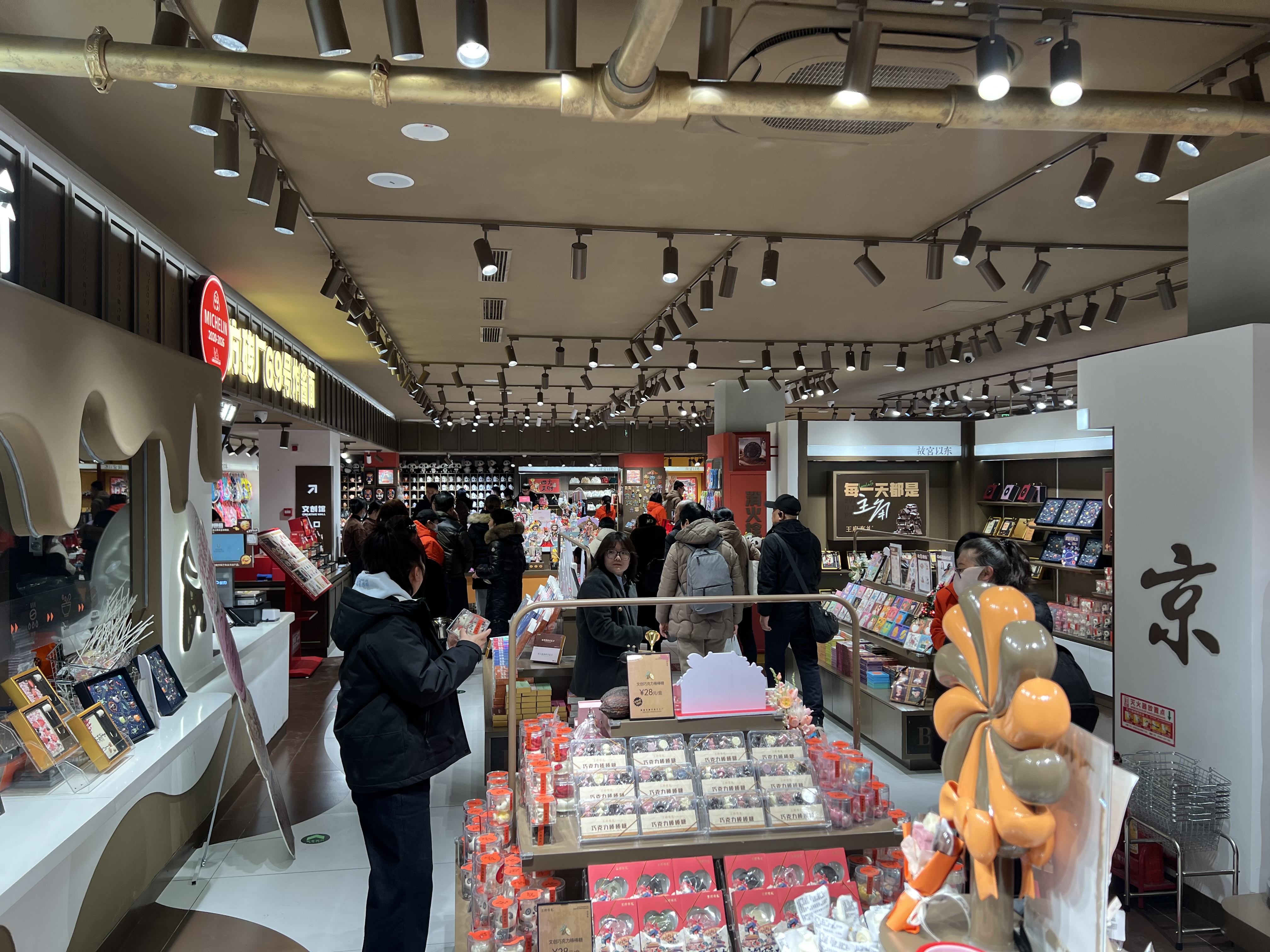 去年9月,商场开始实施业态升级与IP化运营,不仅打造了巧克力展览馆和“故宫以东·王府井礼物”首家线下主题体验店,还对空间布局和动线进行改造,老旧的食品商场面貌一新,变得好吃、好逛又好玩。