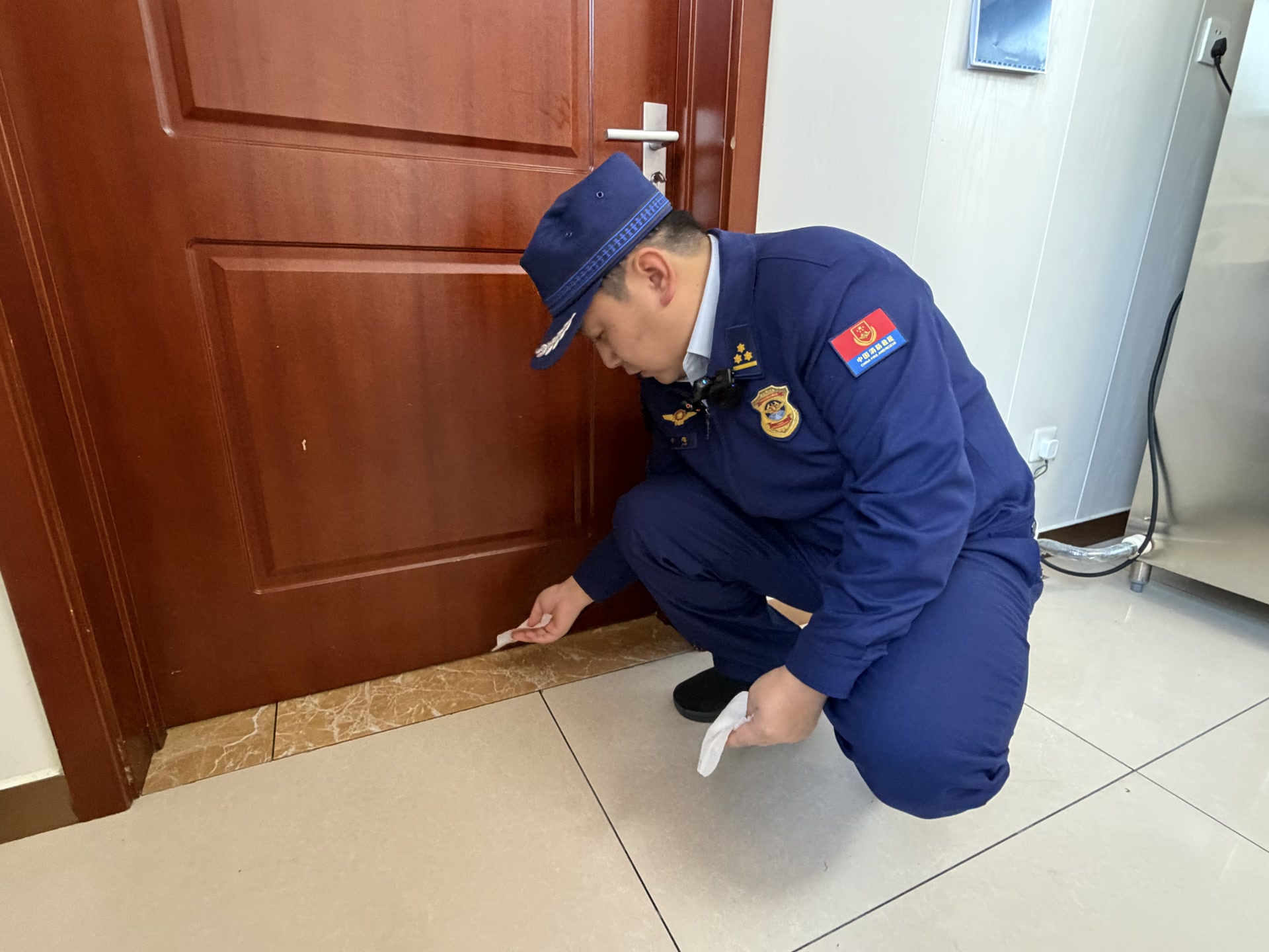 实验地点选在了消防站的厨房,燃气灶正炖着肉。“现在我们打开油烟机,关闭门窗,先观察一种空气动力学现象:负压。”李想站在厨房门外,连续将一张张轻薄的纸巾放在缝隙处,只见纸巾全都被“丝滑”地吸到了厨房内。