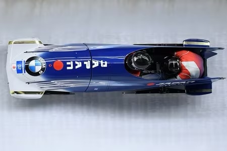 日本男子2人雪车运动员参赛的资料图片