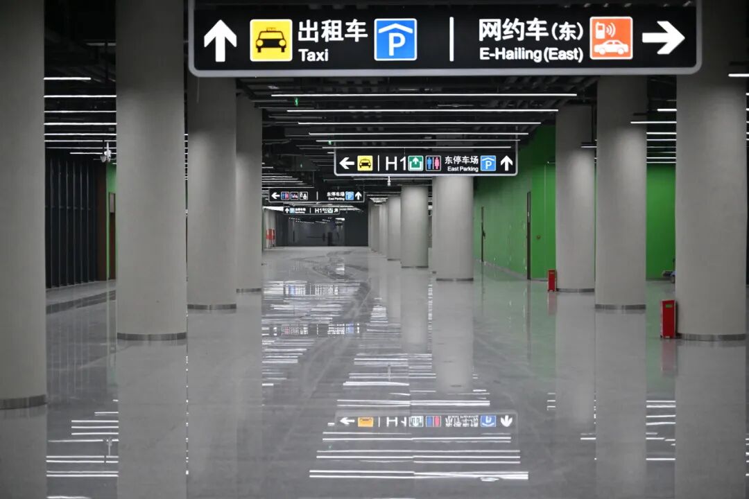 如果您搭乘的是出租车或网约车,目的地将是东西接驳区的B2层专用区域。这里设有醒目的上客点与排队通道;对于驾驶社会车辆的旅客,送站与接站流线被清晰分离。送站车辆可沿标识直达B1层的“即停即走”落客区,便捷高效;接站车辆则需驶入B2层的停车场等候。此外,为分散核心区压力,枢纽在周边规划了多处地面临时落客点,构建起“多路来、多路解”的弹性交通网络。
