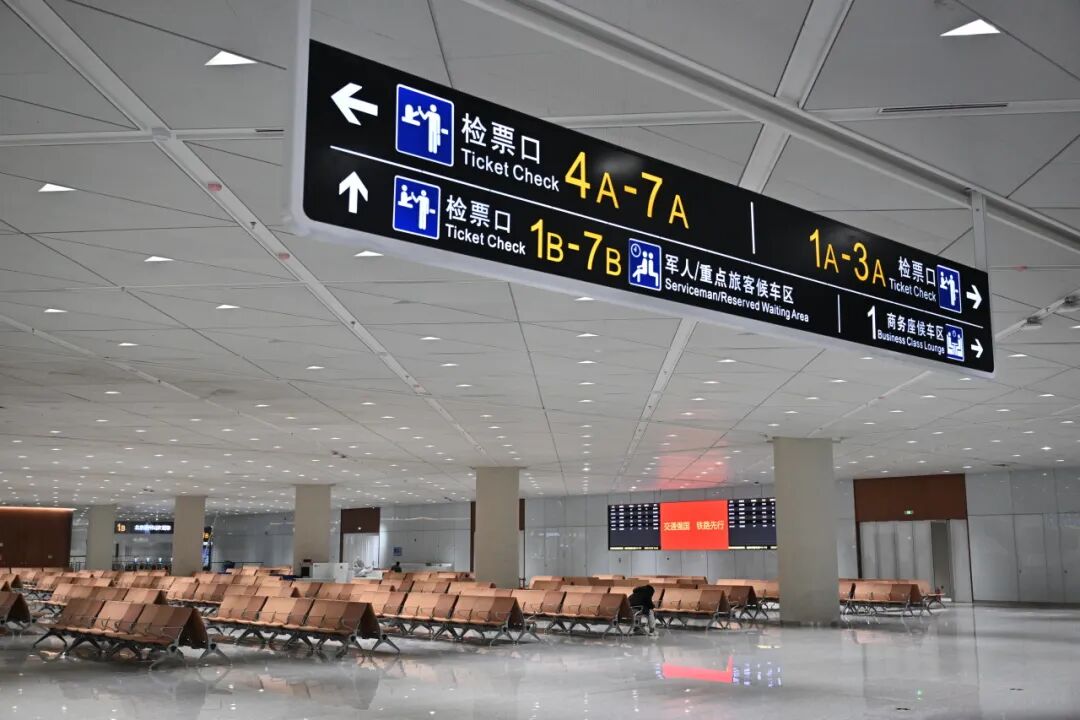 设计中更有对特殊群体的关怀。一条连续、可靠的盲道系统,从地铁站厅外的地面便开始铺设,贯穿换乘通廊,直达枢纽核心区域。针对铁路出行,服务更为周全:铁路方面配备了志愿者,为有需要的视障旅客提供从候车厅至车厢的接力引导与协助。在垂直交通方面,枢纽在站台至各换乘层之间,配备了充足的无障碍电梯,确保乘坐轮椅或行动不便的旅客能畅通无阻。