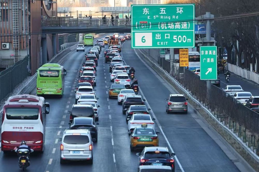 1月5日上午,京通快速路进京方向车行缓慢,而“无牌”非法运营车辆直接驶入应急车道。