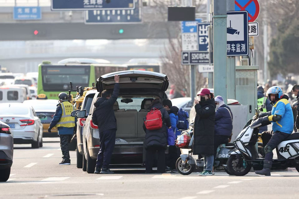 “燕郊燕郊,30元一位啦!我们是‘快车’!”一群黑衣人站在西大望路的路牌下,不停向路人反复吆喝。据相关报道,这些所谓的“快车”长期盘踞在国贸、大望路一带。