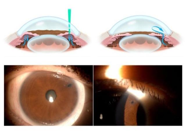 2. 激光治疗:24小时内行虹膜打孔术(LPI),缓解瞳孔阻滞