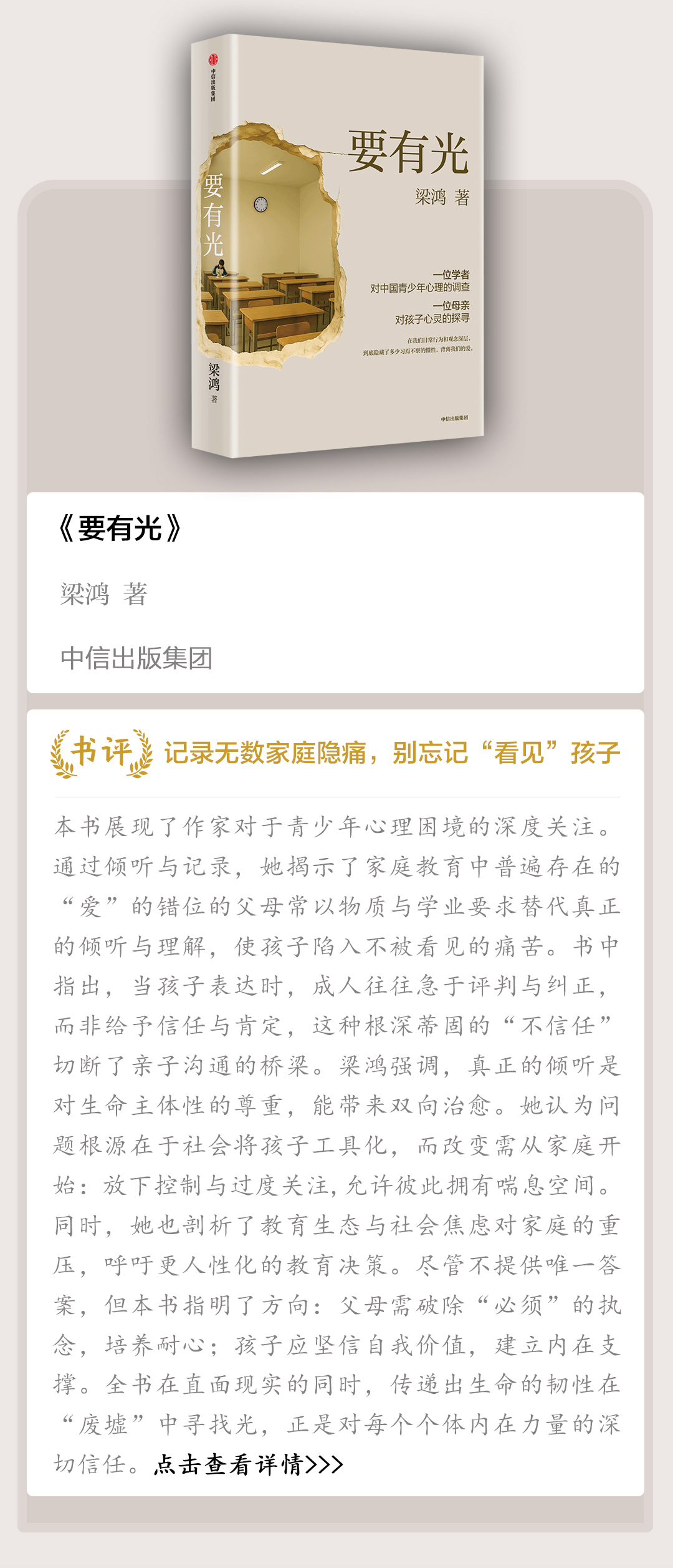每人寄送一本梁鸿新作《要有光》