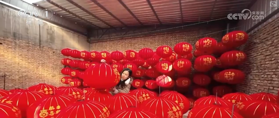 河北省石家庄市藁城区屯头村党支部书记白理伟介绍,村子年产宫灯能达到1亿对,现在到了一年中最旺的季节。