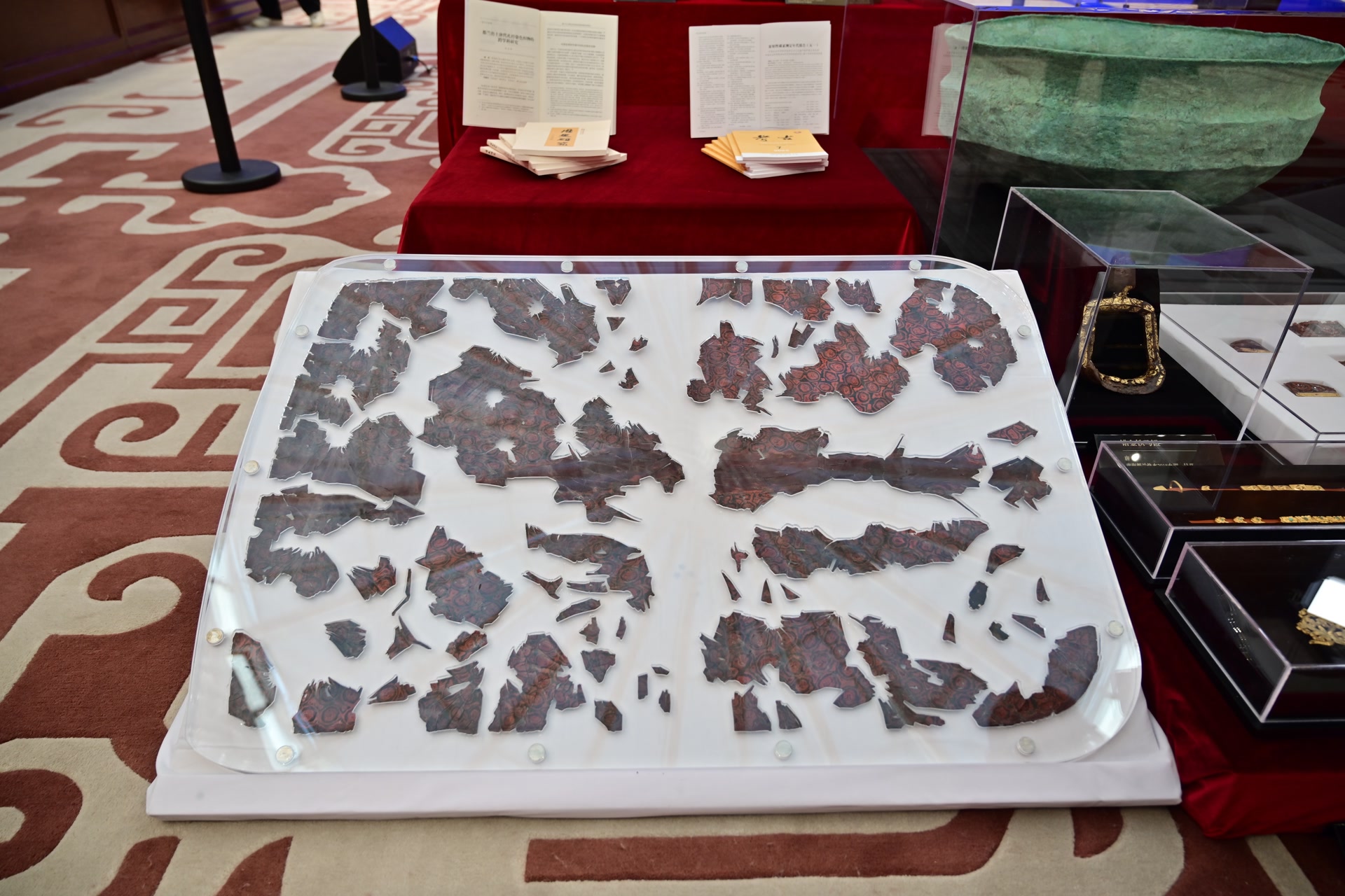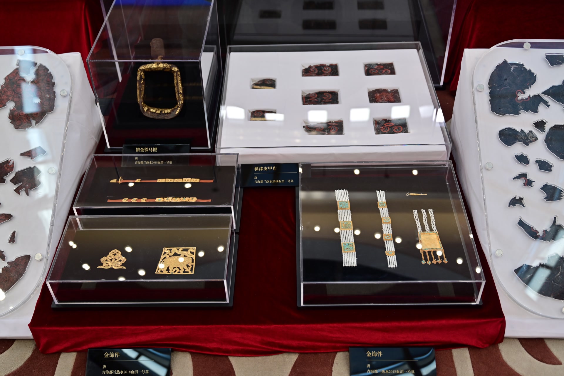 青海都兰热水墓群2018血渭一号墓是“2020年中国考古新发现”之一。该墓出土的铜釜、错金铁马镫、金饰件、髹漆皮甲片、髹漆皮盾等文物近期完成重点文物保护修复,在现场集中展示。