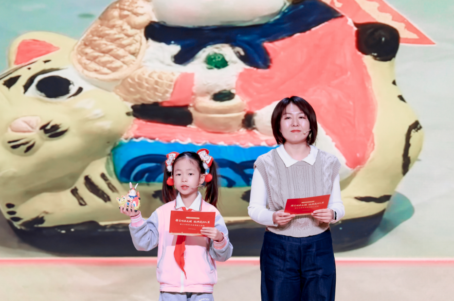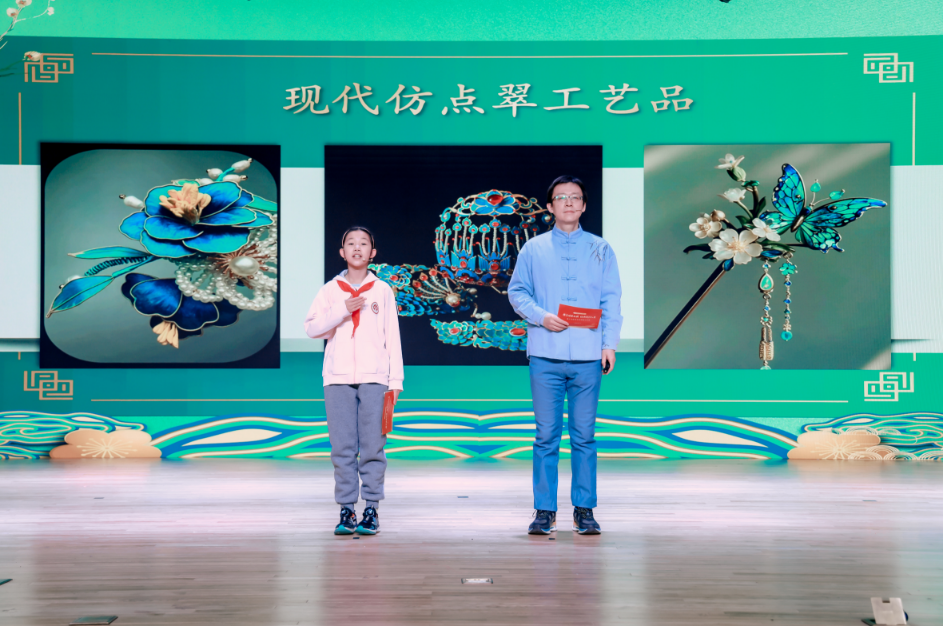 “非遗少年”篇章则围绕“春华杯”亲子同创共讲活动获奖作品进行展示,3个获奖家庭,依次登台分享了他们与非遗相伴的故事与作品,展现“小手拉大手,非遗共传承”的生动实践。北京市海淀区第四实验小学蔡鹿溪的家长表示“这次活动是一次深刻的再教育。我在心态上完成了从‘教育者’到‘陪伴者’乃至‘同学’的转变。”北京市第八十中学温榆河分校学生刘芮东是个京剧资深票友。她的妈妈表示:“孩子从四年级开始接触京剧,这些年,我们整个家庭的生活都因京剧而变得格外丰盈。孩子用他的热爱和坚持,为我打开了一扇通往国粹的大门。”