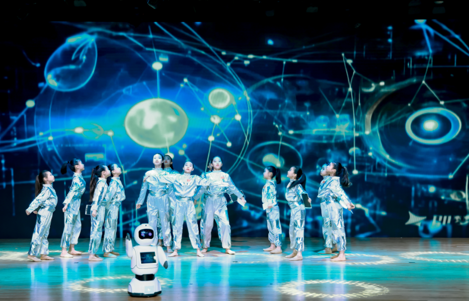 在“科创少年”篇章中,同学们以舞蹈表演《AI逐梦》展现对科技的憧憬与追求,人大附小一年级学生张含奕分享了从AI图书中发现的奥秘:“嫦娥五号能精准飞向太空、完成采样,背后居然藏着人工智能的大秘密!AI不仅能帮航天器‘指路’,还能变成我们身边的小帮手、小老师呢。”随后的快闪视频集中展示了学生们对AI的探索成果,4名获奖学生登台发出“善学、善思、善用AI”的倡议,展现了新时代少年对科技的理性认知与创新担当。北京大学副教务长、北京大学附属中学党委副书记、校长马玉国表示:“‘雅言传承文明’活动与时俱进,贴近热点,为孩子们搭建了创新表达的展台,比如人工智能类的好书推荐,不仅让孩子们主动探索了AI,通过孩子们的作品,也让我们了解了他们对AI的看法和思考,对于我们开展语言文化教育和AI教育,具有很强的指导意义。”