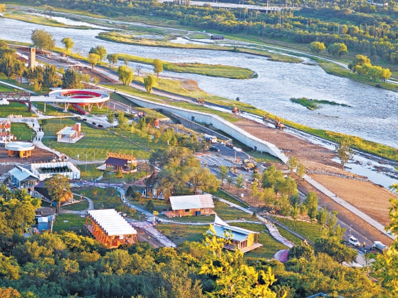 “两园一河”即石景山首钢园、丰台园博园和永定河。石景山区区长万隆表示,2026年着力构建“两园一河”石景山示范段“一轴一带领门户,三区九段营彩岸”的空间发展格局,滚动推进一批重点项目,建成永定河右岸“大地艺术”、永定河(首钢园)滨水空间景观提升等工程,实施石卢灌渠保护焕新、精华区景观照明等重点工程。