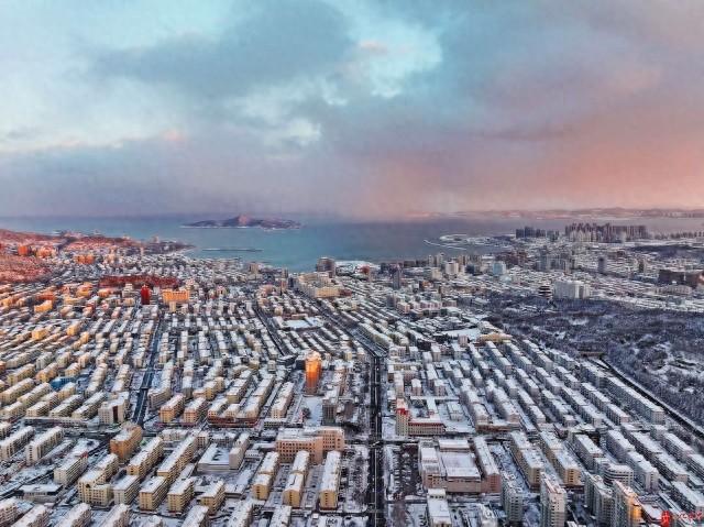 如果说黑白分明是雪后威海的筋骨,撑起了城市的秩序与担当,那么银蓝相间,便是这座城市最动人的肌肤,藏着大自然馈赠的无限诗意。银,是雪后大地的主色调,却不是单调的白。清晨时分,太阳缓缓从海平面升起,金色的阳光轻柔地洒在积雪上,原本纯净的白雪便多了一层温润的银辉,光芒柔和不刺眼,像给整座城市镀上了一层薄纱,裹在一片淡淡的暖意里。远处的山峦被积雪全覆盖,连绵起伏的银色轮廓,在天际线处勾画出柔和的线条,没有浓墨重彩地勾勒,却像一幅淡雅的水墨山水画,清雅又悠远,让人忍不住驻足凝望。
