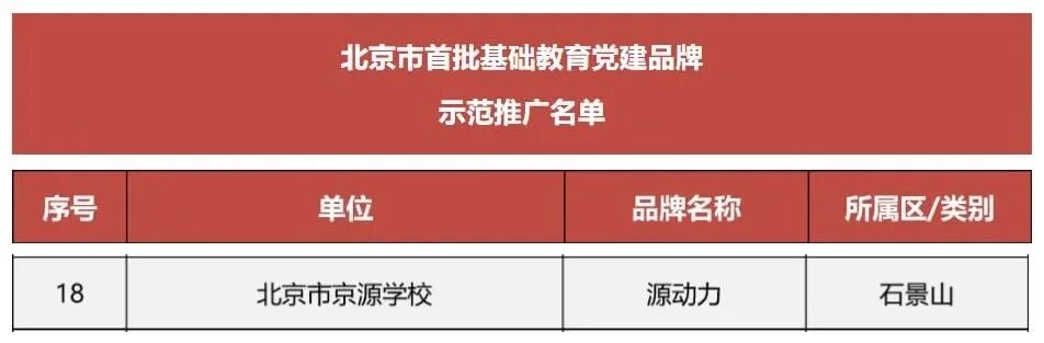 1月12日,北京市首批基础教育党建品牌示范推广名单正式公布,京源学校“源动力”党建品牌成功入选,成为全市首批示范推广的42个党建品牌之一。