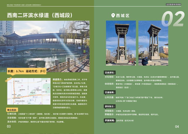 绿道地处西城区西南二环,天宁寺桥至永定门桥段护城河畔,全长约6.7公里,“红楼文化+辽金建都史”双主题,串联大观园、先农坛、金中都公园等核心点位,是兼具历史探秘与滨水休闲的城区绿道,适配亲子研学、情侣约会与历史迷打卡。在这里,能感受到北京作为历史古都,在城市建设与发展中所积淀的深厚文化底蕴,触摸到历代王朝营城的智慧与匠心。