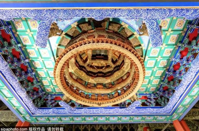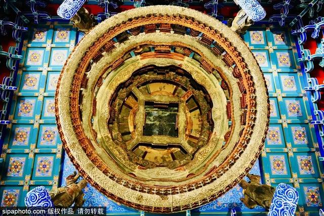 先农坛太岁殿,用仰拍角度拍藻井全景,让娃站在殿内仰望,凸显藻井的宏伟,记得关掉闪光灯避免反光。