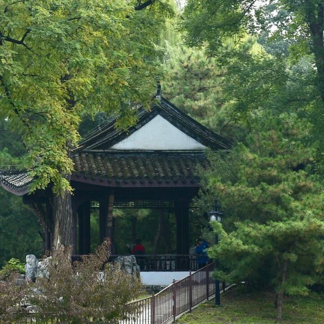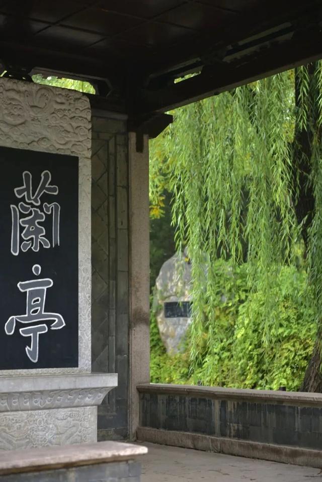 逛“华夏名亭园”,不用赶时间,在兰亭旁看书法爱好者练字,在醉翁亭下听收音机里的评书,累了就歇,主打一个“随心所欲”。