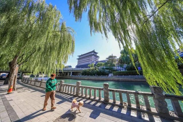 慢吃京味饭后散步,到护城河边,看傍晚灯光亮起,河水倒映着岸边的树影,慢走消食,给一天的休闲时光画个圆满句号。