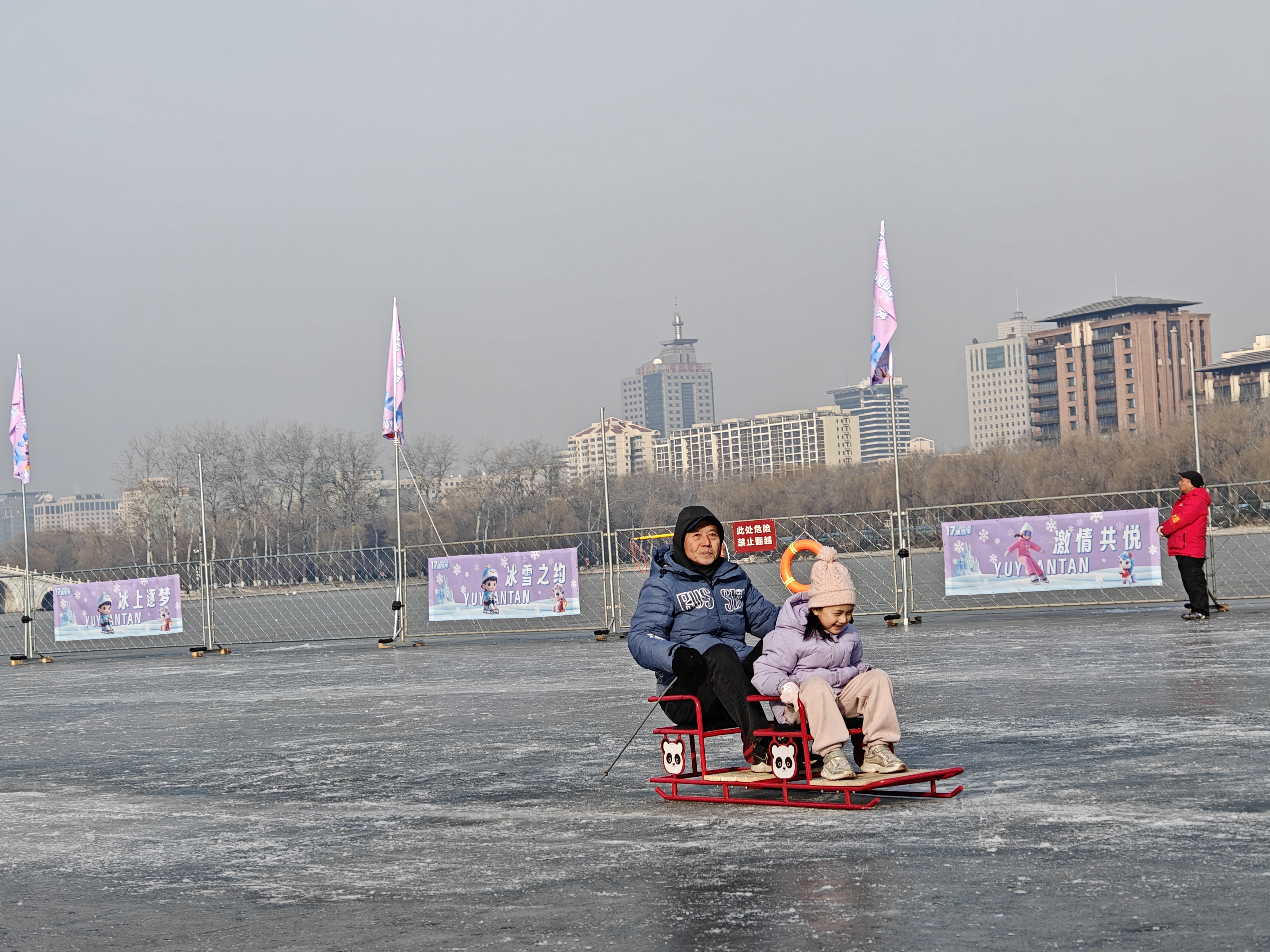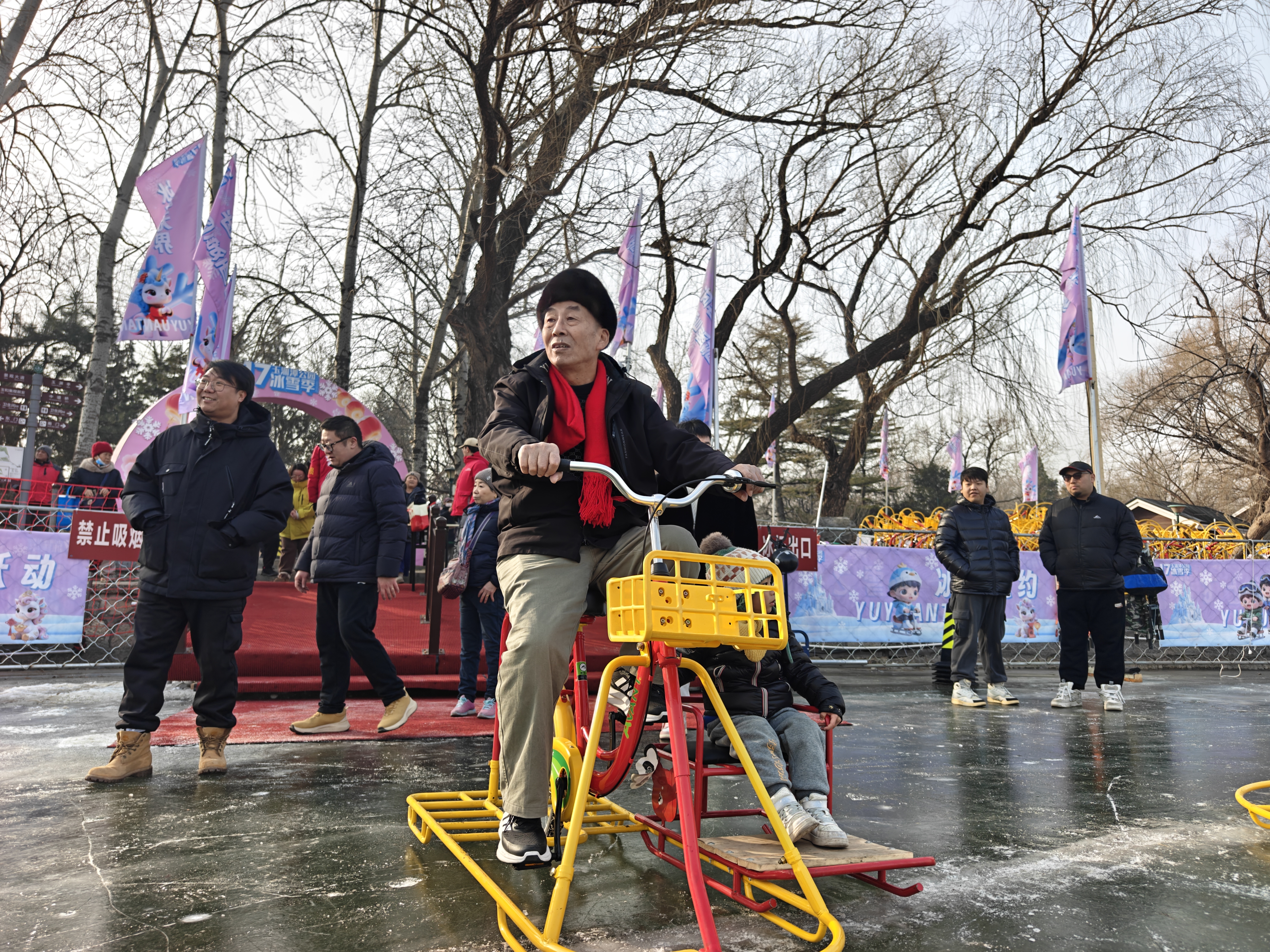 时隔六年,玉渊潭公园冰场今日以全新面貌迎客,为京城冬日添上一抹灵动活力。今年公园倾力打造近2万平方米的冰上乐园,融合冰车、冰上自行车、电动冰车、狗拉雪橇冰车、雷霆战车等多种冰上趣味项目,为市民游客呈现一场规模更大、玩法更多、体验更好的冰上嘉年华。