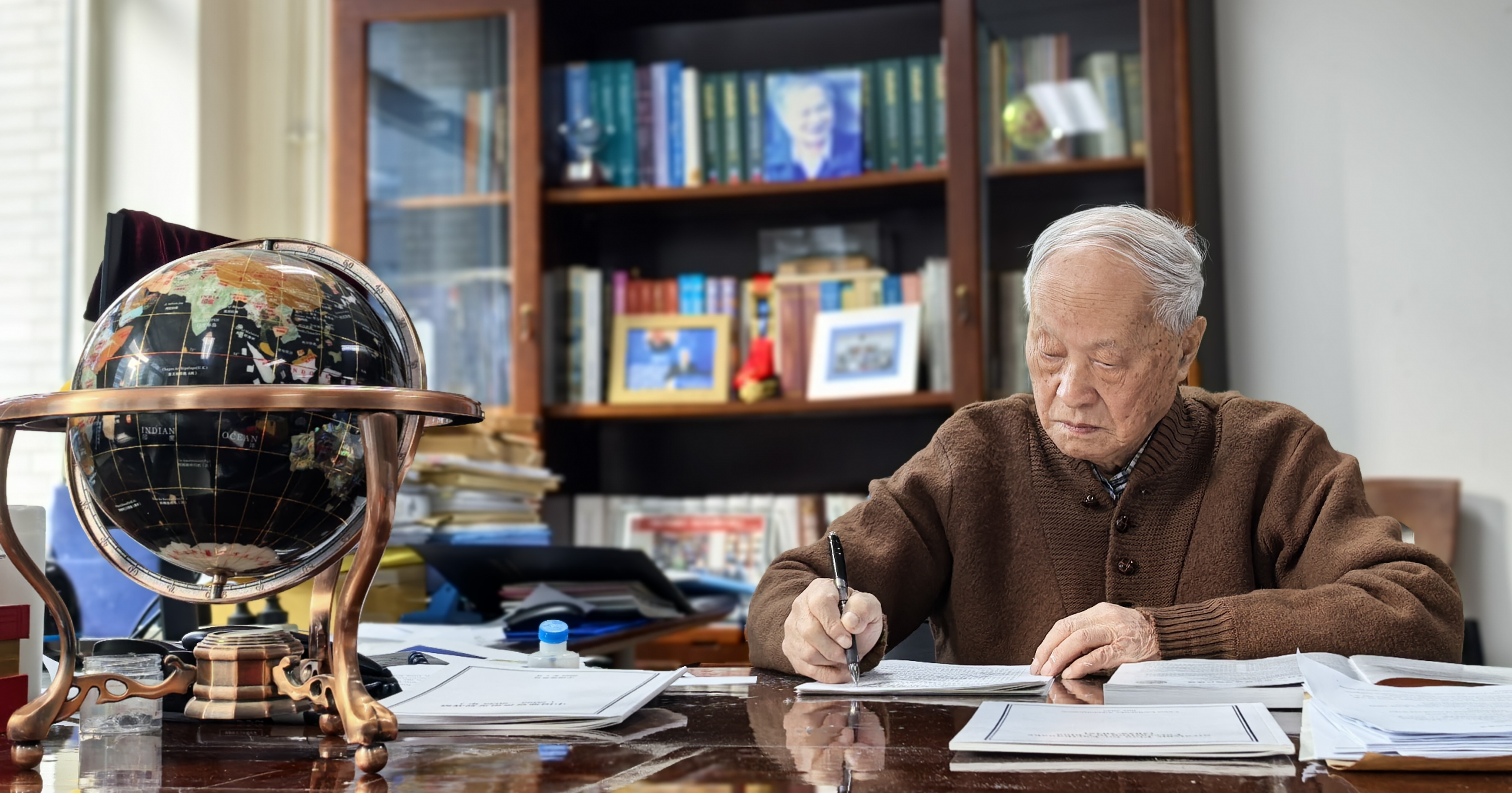 办公桌前的这位老人,满头银发,精神矍铄,很难想象他已届人生的鲐背之年。作为我国深部地球物理探测事业的开拓者、奠基人之一,91岁高龄的滕吉文仍坚持在研究岗位。
