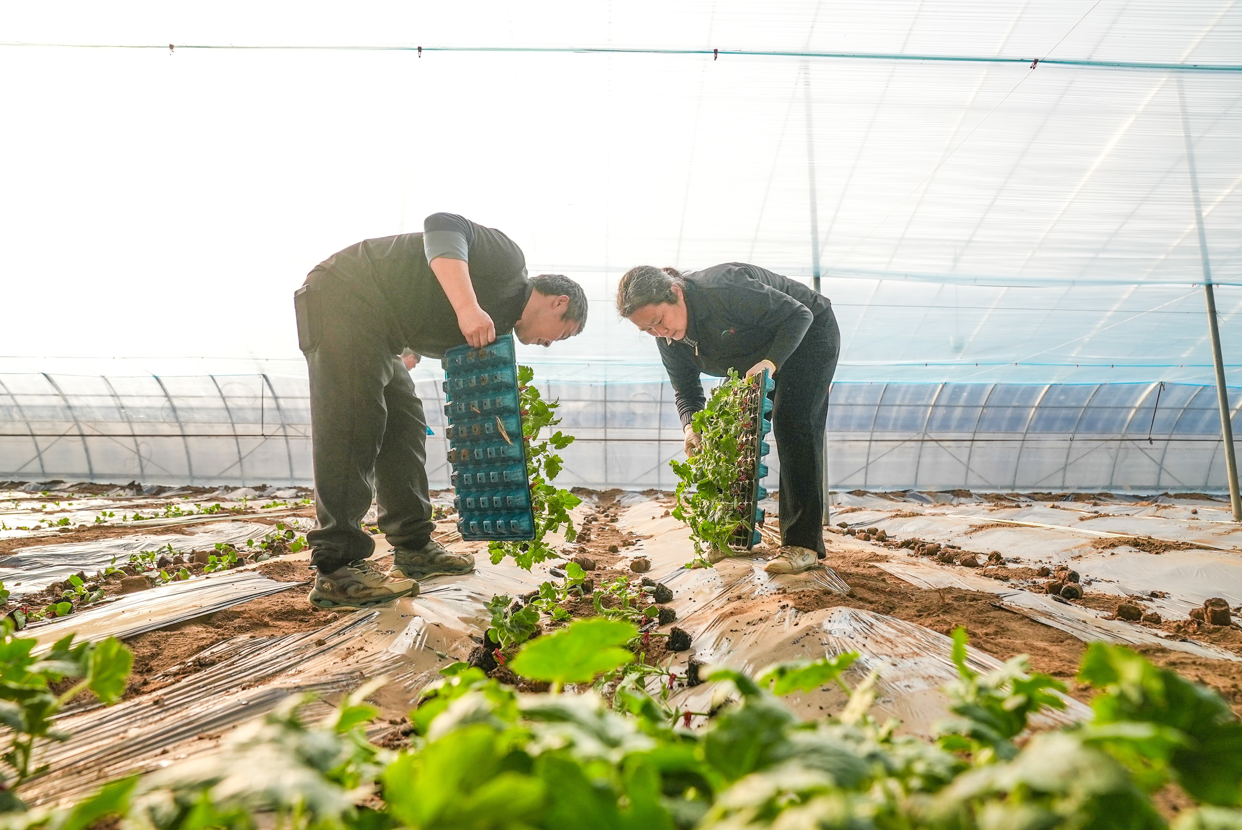 据合作社负责人介绍,此次定植精选“L600”“L1000”“炫彩8号”“京彩6号”等市场认可度高的小型西瓜品种,共计栽种4500棵。为从源头保障西瓜的品质与产量,基地应用水肥一体化、智能温控等现代化栽培技术,通过精准供给水肥、实时调节棚内温湿度,为瓜苗生长打造适宜的生长环境。