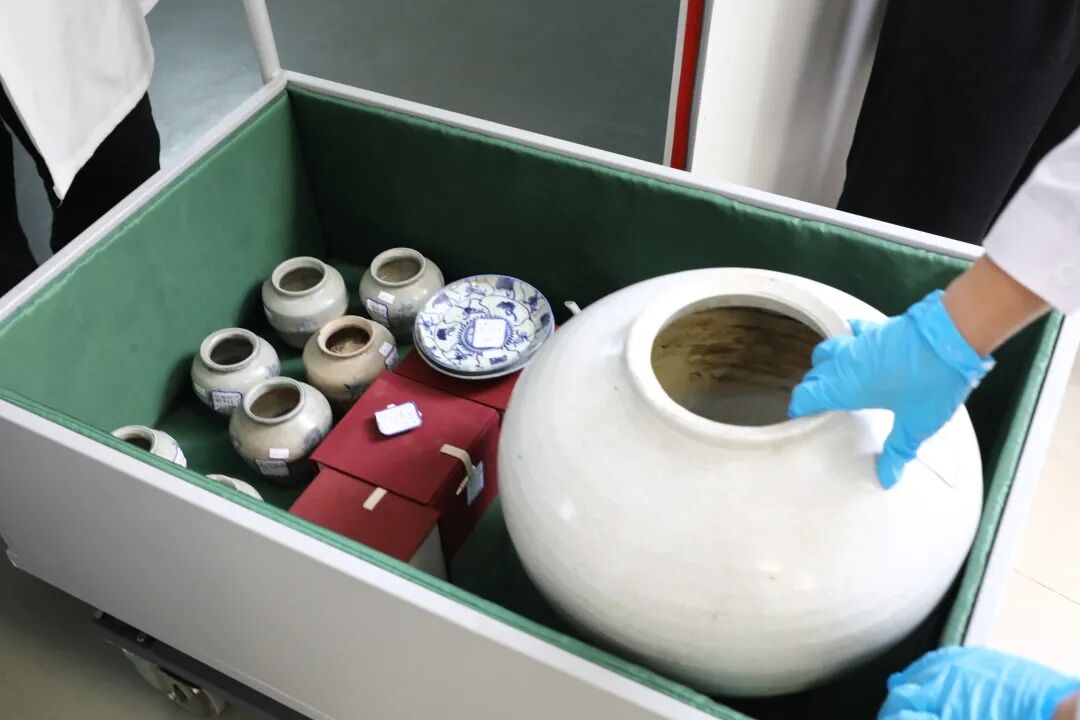 此次移交的文物主要为清代和民国时期的文物,包括白釉罐、古钱币、青花瓷罐、青花瓷片、粉彩花卉纹盖缸、砚台、铜三足炉等。