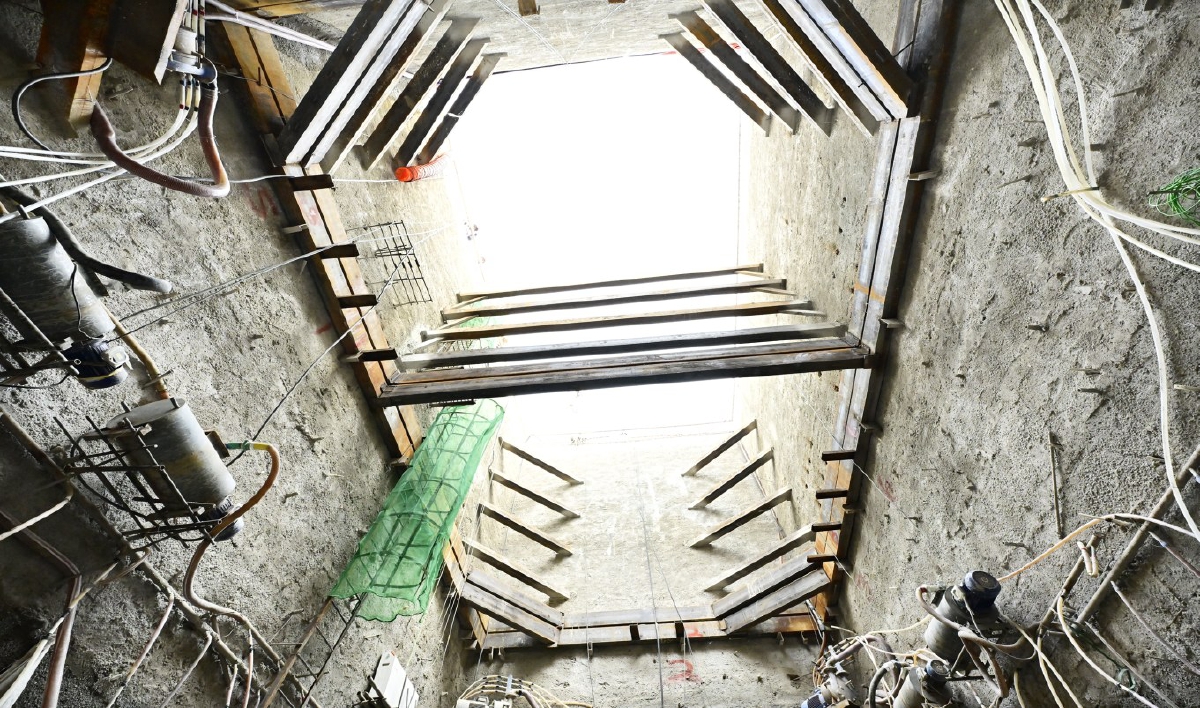 昨日,位于梨园镇东小马地块供热建设工程现场,地下14米深的竖井内,工人们踩着钢筋网,在地下水环绕的环境中精准绑扎钢筋——这里正上演着一场与地下水“博弈”的热力管线施工硬仗。