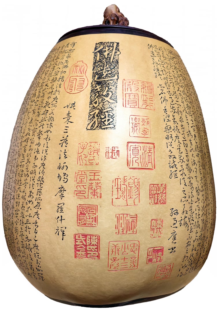 王伟,将中国书法刻在葫芦上,他手中的刻刀是尖锐而锋利的,从容地表现出中国书法自古以来以柔软的毛笔书写的方式。