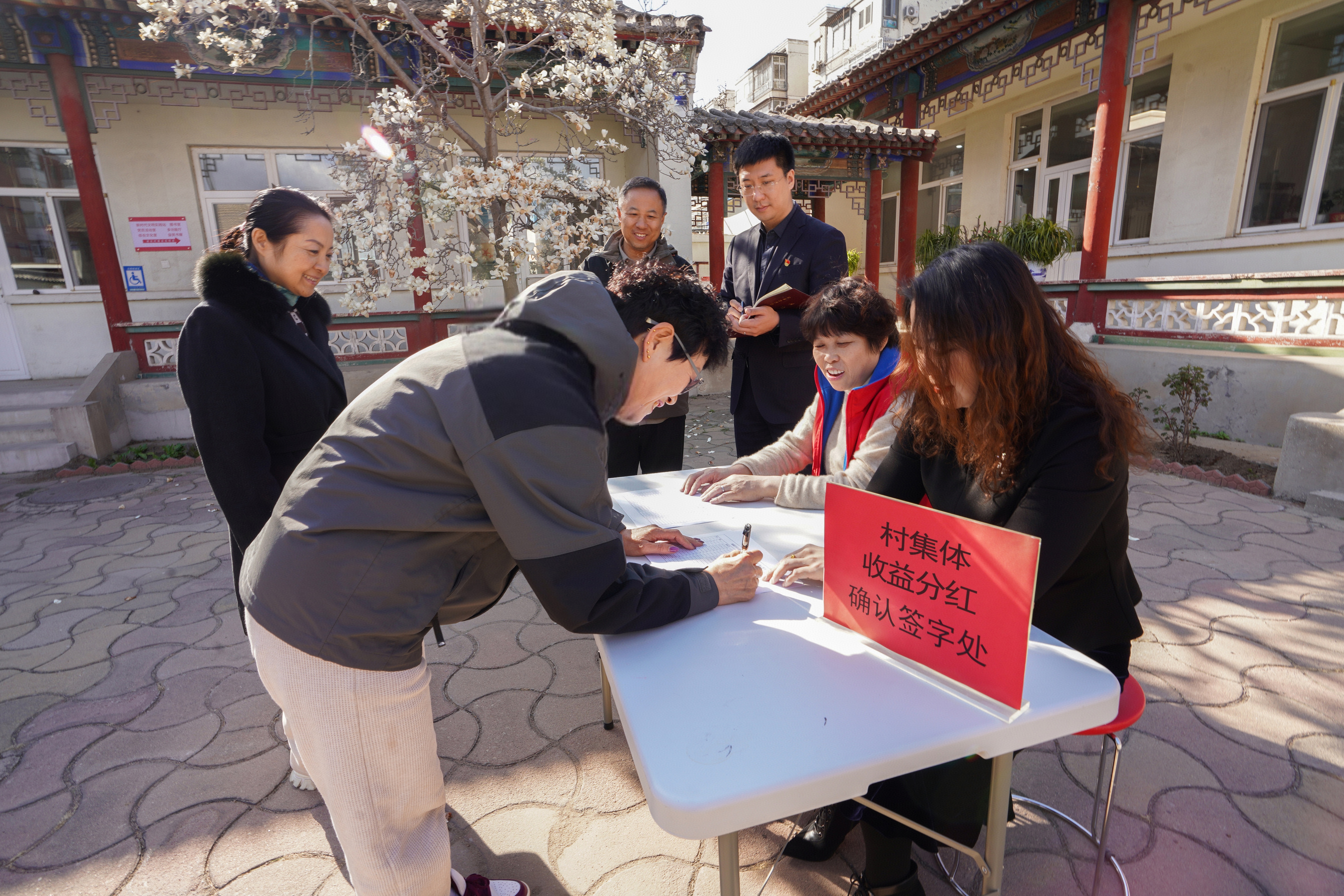 纪检监察干部现场监督检查村集体收益分红发放情况。