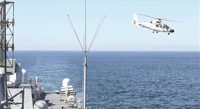 ↑中方舰载直升机在演练中。杜江帆摄
