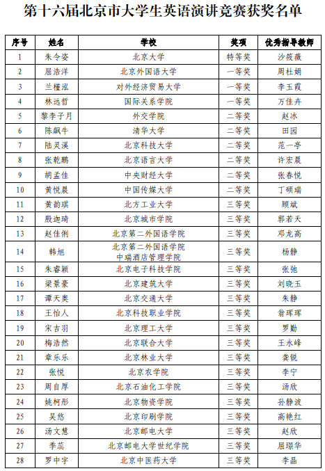 2025年 北京市大学生文化创意设计、交通科技、化学实验、英语演讲四项竞赛获奖名单公布