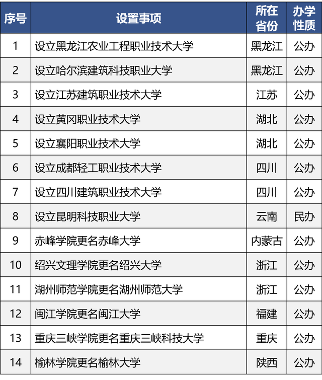 1月12日,教育部网站发布《关于拟同意设置本科高等学校的公示》,拟同意设置黑龙江农业工程职业技术大学等14所学校。公示时间为2026年1月12日至1月16日。