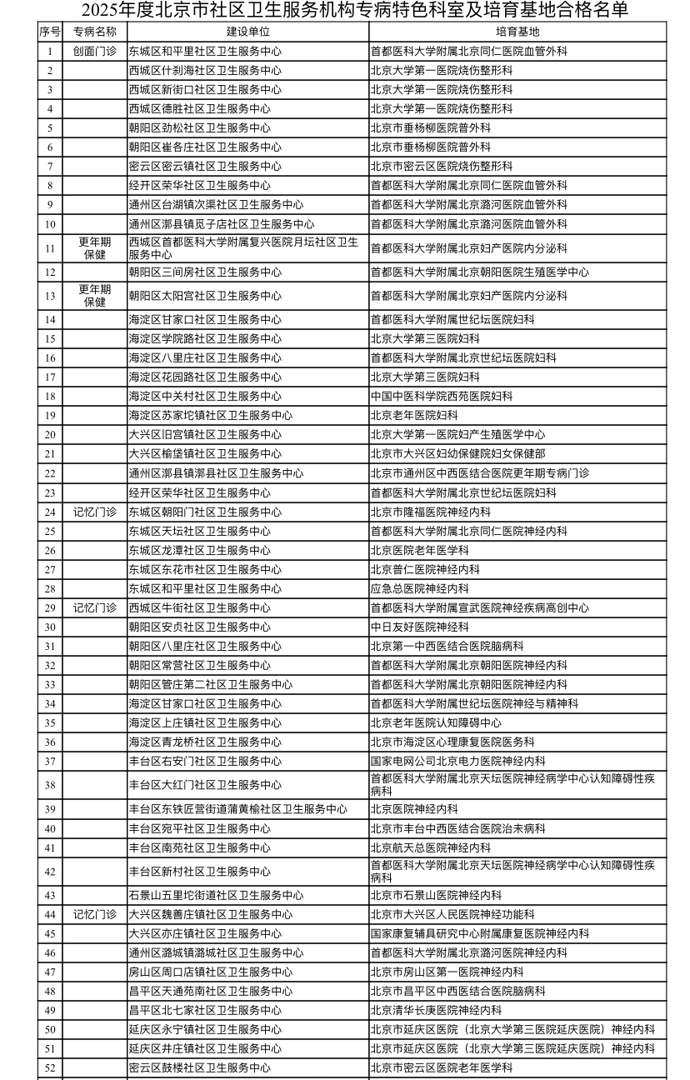 北京市卫健委日前公布2025年度社区卫生服务机构专病特色科室及培育基地名单。本市新添206个社区专病特色科室、172个社区专病特色科室培育基地。