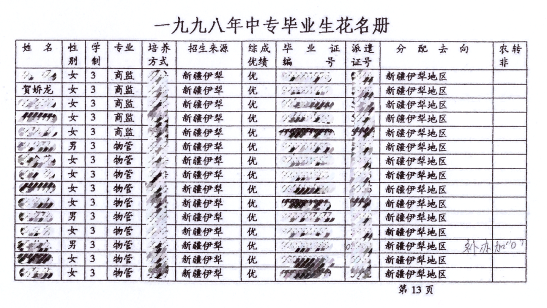整理资料时,我们再次翻出这些老档案。薄薄的纸张上,记录着一个新疆女孩远赴兰州求学的足迹:她曾是班上的文艺委员、宣传委员,爱说爱笑,活泼热情;毕业鉴定里那句“担任班级宣传委员、工作认真负责”,以及“优秀团干部”称号,依然清晰。当年老师写下“学习努力、态度端正、团结同学”时,或许不曾想到,这个女孩将在二十多年后,把母校“手脑并用、创造分析”的精神,带得那么远,践行得那么实。