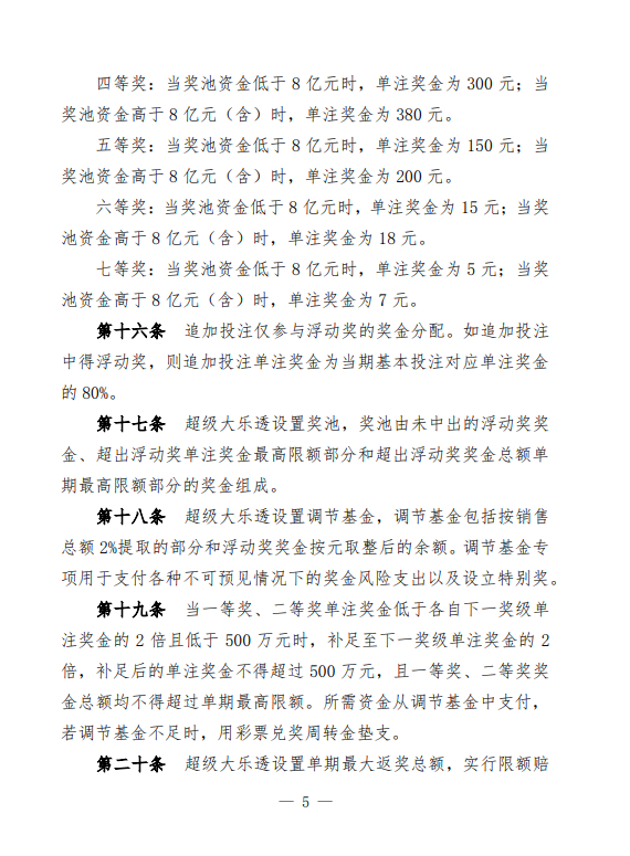 一、为适应彩票市场发展形势,促进彩票业持续健康发展,同意你中心变更中国体育彩票超级大乐透游戏规则。变更的主要内容包括合并部分奖级,调整浮动奖奖金总额、固定奖单注奖金、部分文字表述等。