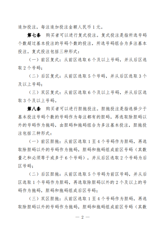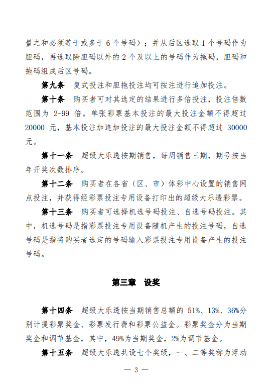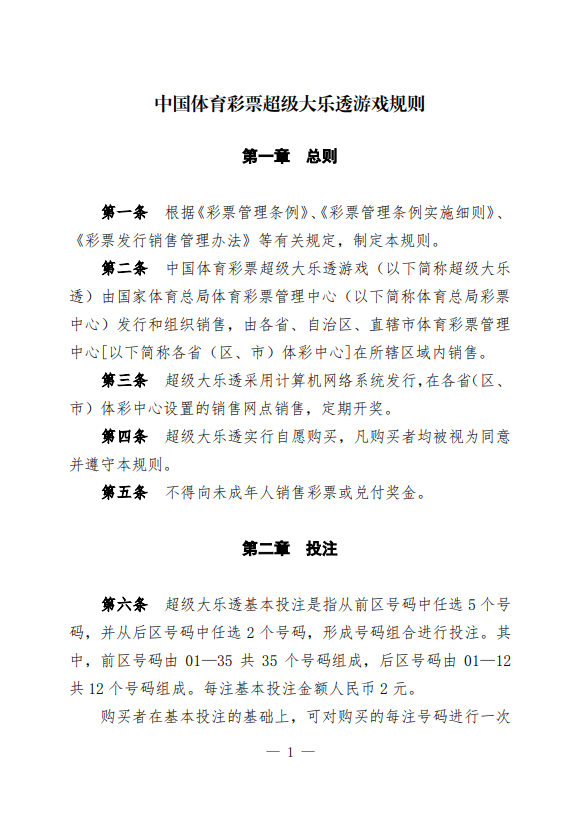 你中心报来的经国家体育总局审核同意的《关于变更中国体育彩票超级大乐透游戏规则的请示》(体彩字〔2025〕292号)、《关于优化超级大乐透游戏规则部分条款相关事宜的函》(体彩字〔2025〕318号)收悉。根据《彩票管理条例》(国务院令第554号)、《彩票管理条例实施细则》(财政部 民政部 体育总局令第96号)和《彩票发行销售管理办法》(财综〔2018〕67号)等相关规定,现就有关事项通知如下:
