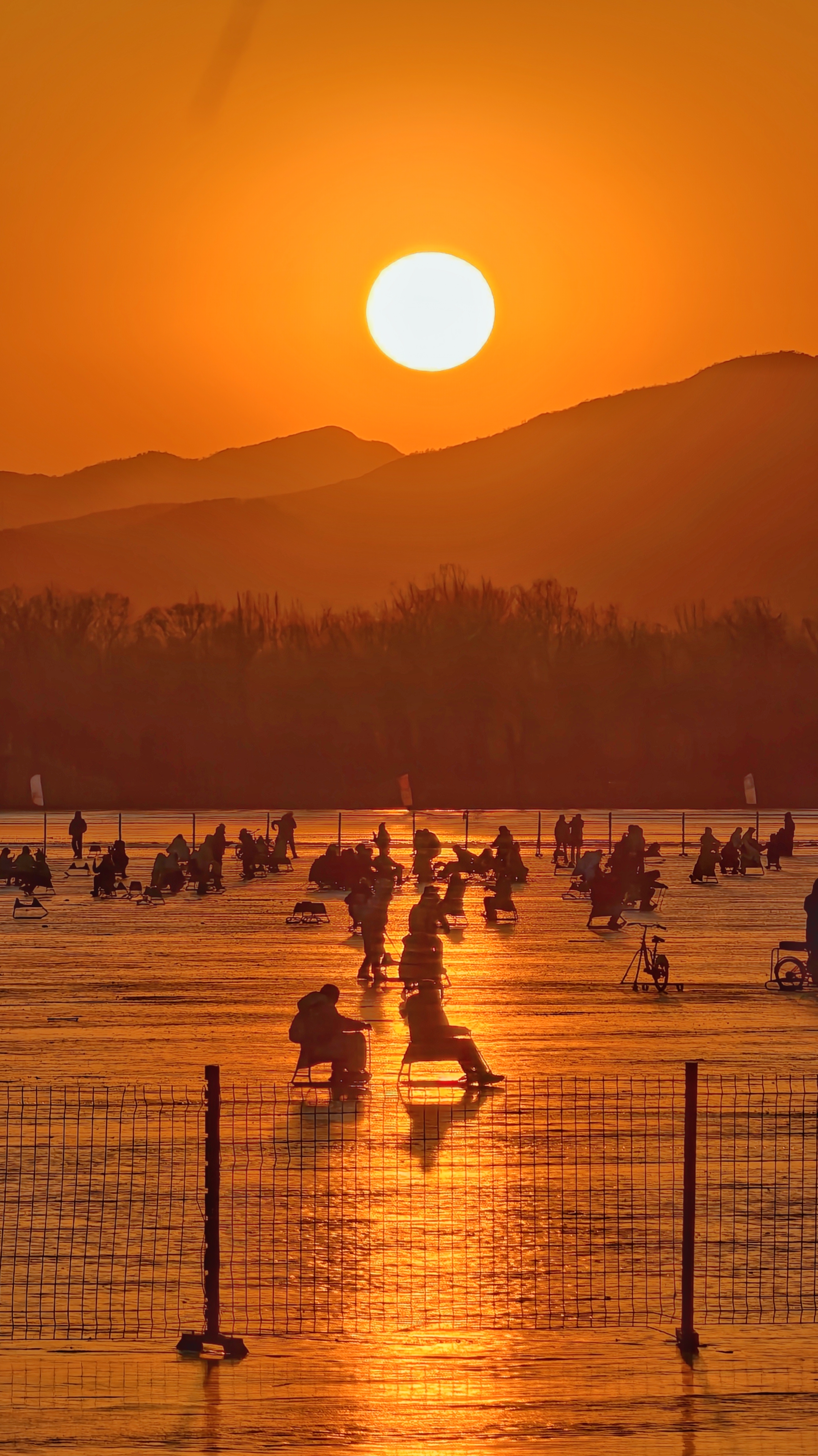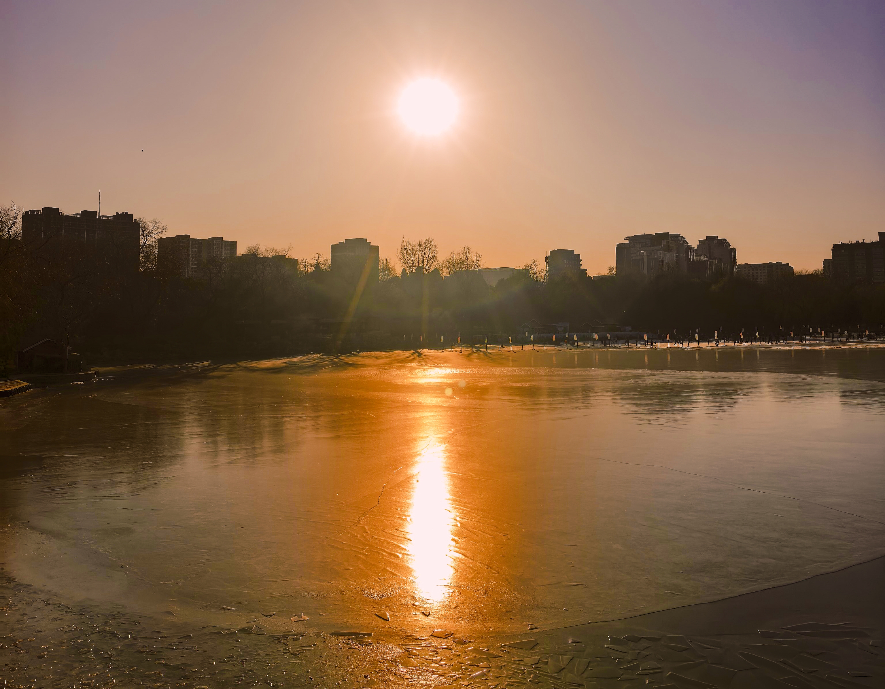 冰欢正酣,岸侧游人踏碎金。