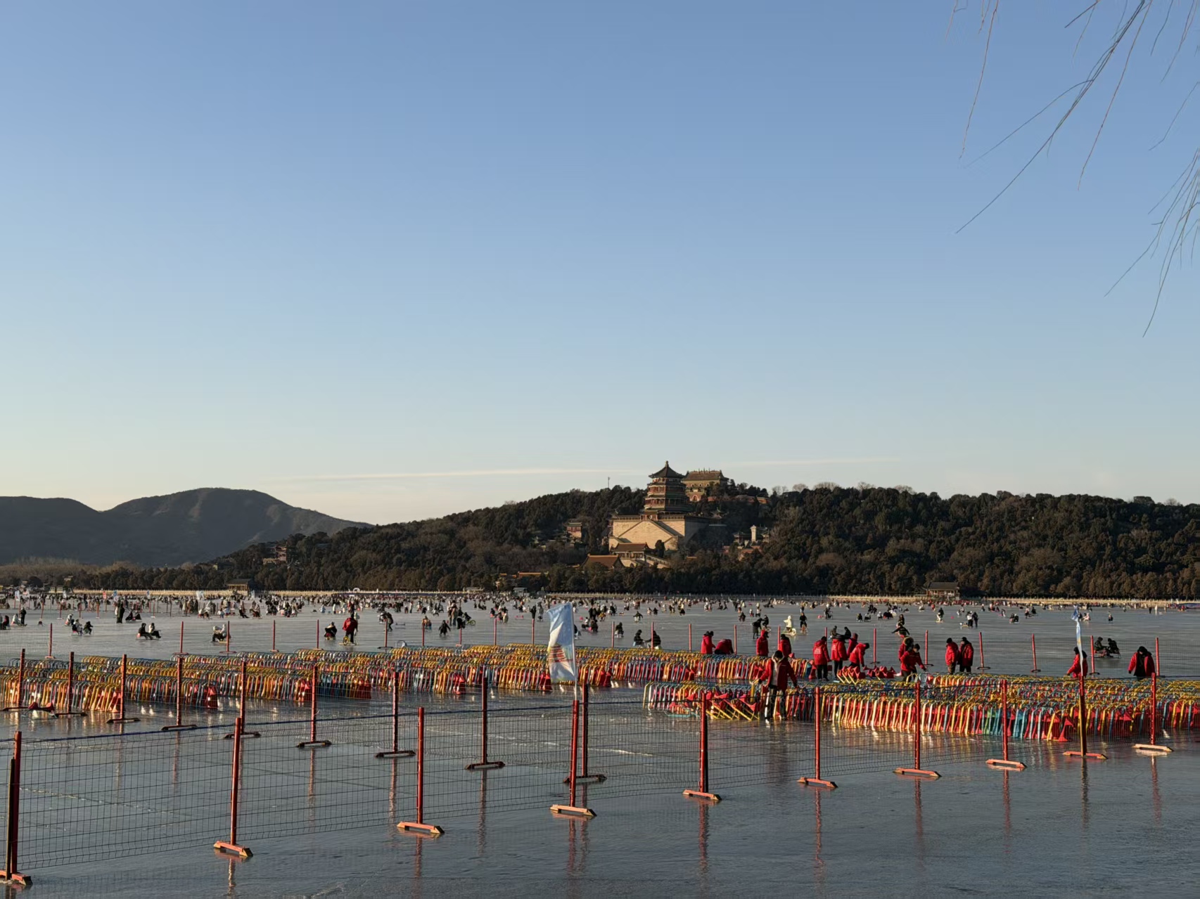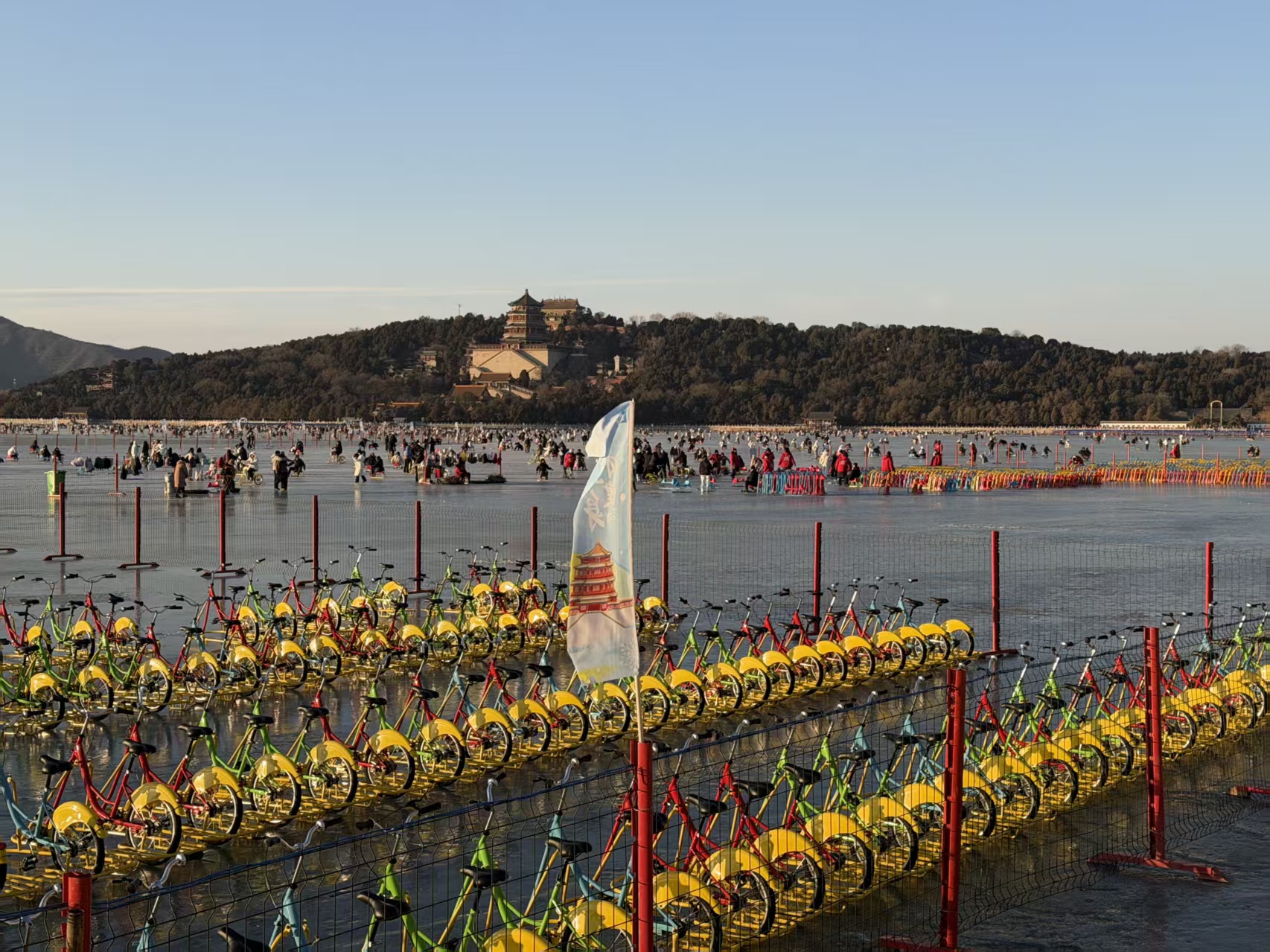 今年,冰场整体运营面积约16万平方米,开放区域涵盖排云殿南侧、知春亭西侧、铜牛西侧及西堤东侧等多处冰面,并设有玉澜堂码头、铜牛码头、排云殿码头、西堤码头4个入口。