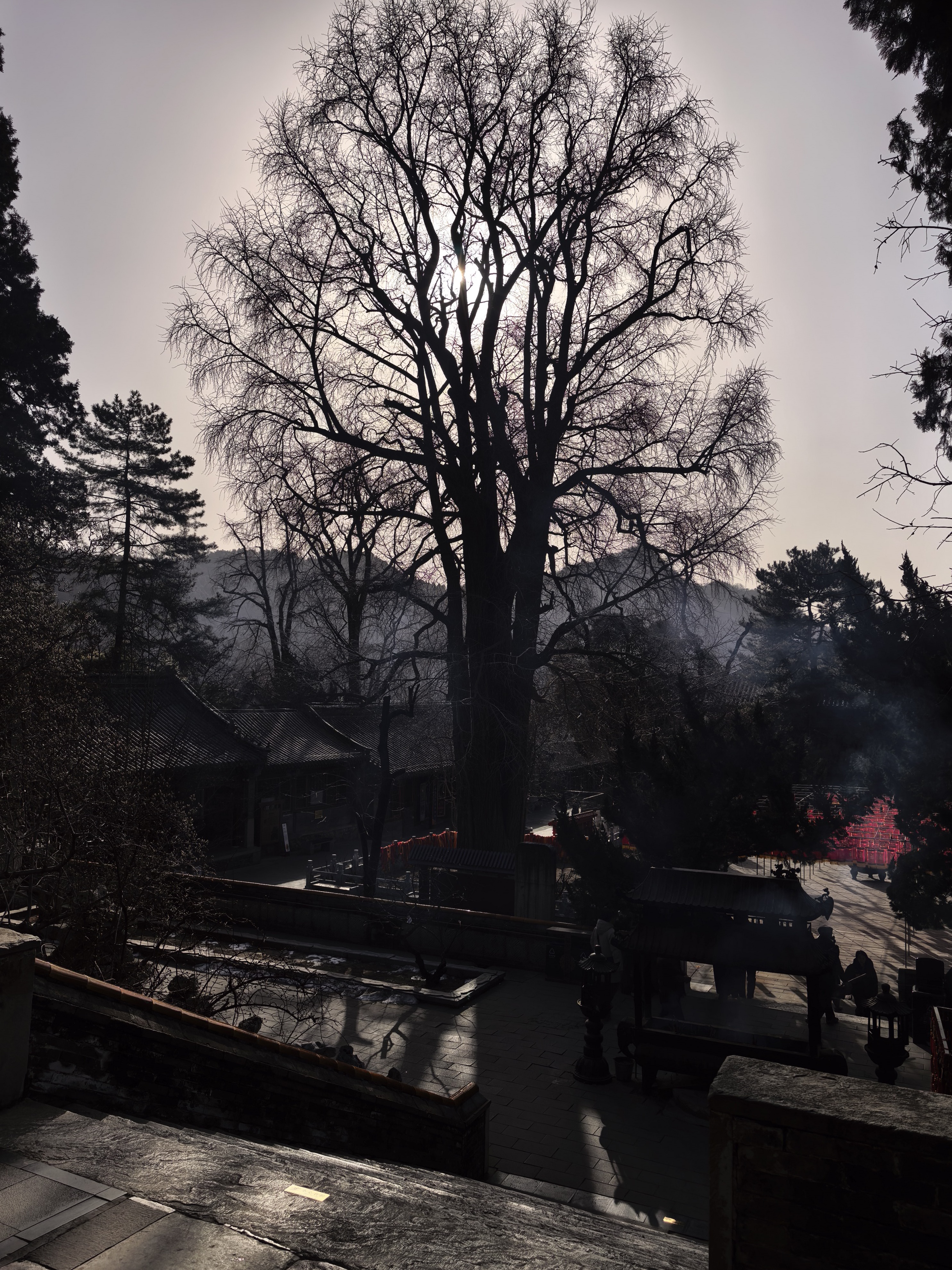 风依旧冷,这冷,倒像是一种慷慨的赠予了。它赠予这古刹以清净的骨骼,赠予古树以嶙峋的笔触,赠予砖石以深情的记忆,赠予飞禽以禅定的姿态,赠予肠胃以温热的简净,也赠予我一个澄明的、关于岁末的晌午。