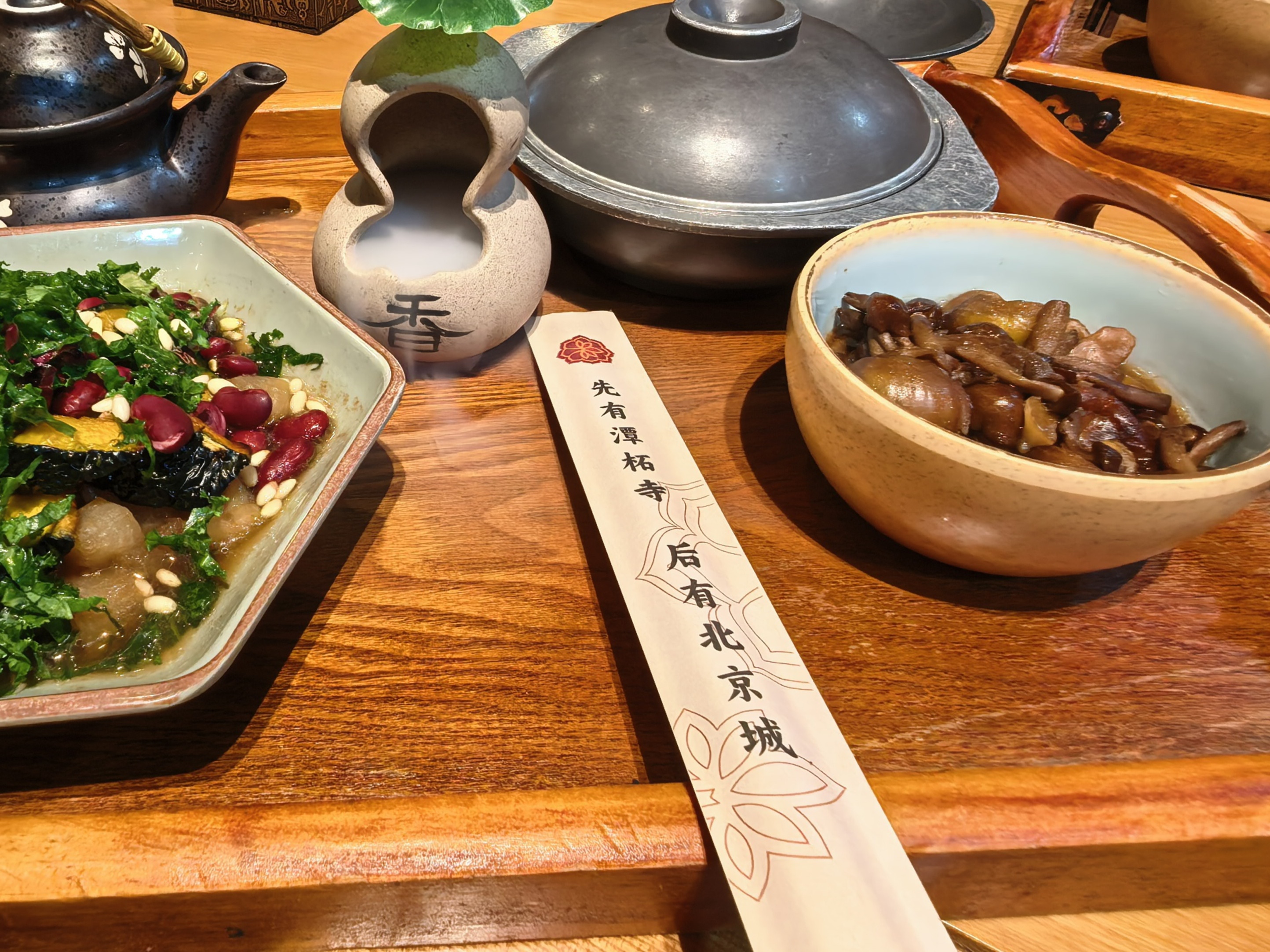 回去的路上,一股极清简、却又极切实的香气,幽幽地,从更深处的院落里飘散过来。那是素斋的气味。淡淡的,暖暖的,像是将冬日窖藏的白菜、新磨的豆腐、山间拾来的菌菇,还有新米蒸腾出的最朴素的饭香,都拢在一处,用文火慢慢地煨着,让那热气与清香,丝丝缕缕地透过寒冷的空气,传了过来。这香气,与殿里的檀香、与砖石的冷寂、与古木的清苦,都不同;它是属于人间的,带着灶火的温存,带着劳作的踏实,一下子将人从那悠远的历史与缥缈的思绪里,轻轻拉回现前的一刻。