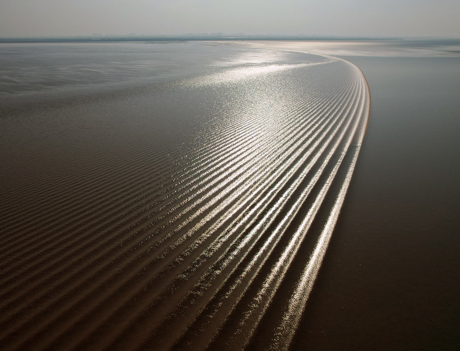 钱塘江“波纹潮”,为喧嚣的世界带来了一种罕见的宁静与秩序,为世界风景奉献了中国江河的从容、细腻和律动之美。
