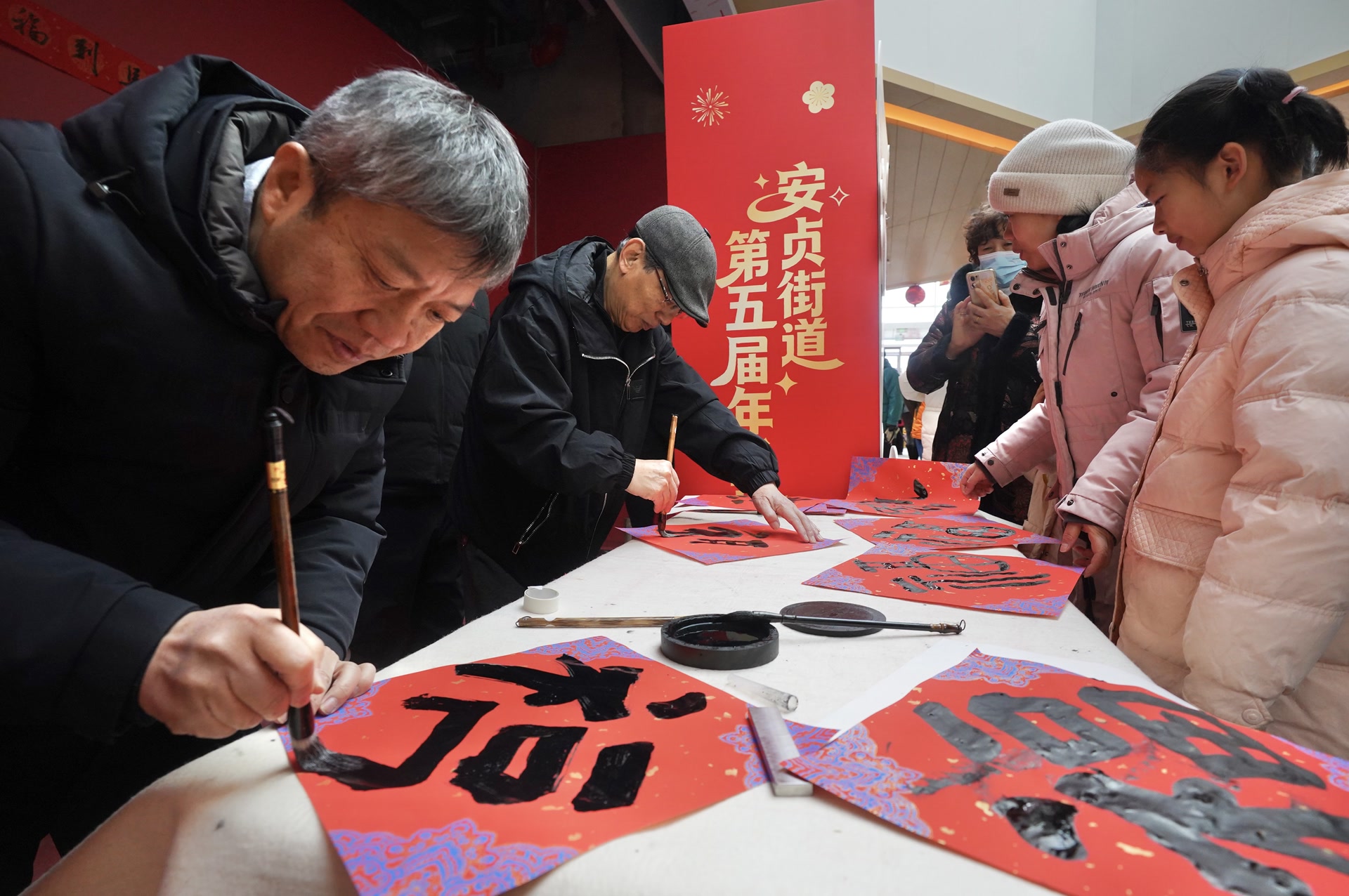 书法爱好者现场挥毫,一副副红火春联墨香四溢,福字拓印师傅以勺代笔,精心勾勒“金马福字”。在“便民生活圈”服务区,家电快修、家政咨询等摊位前络绎不绝,居民逛一次集,能办多件事。