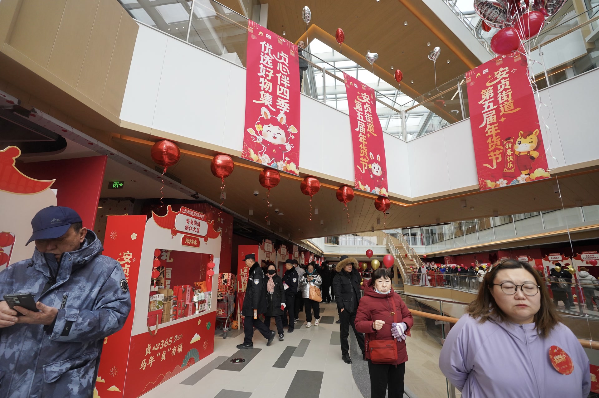 安贞街道和和平里、德胜、花园路、和平街、亚运村5个街道接壤。每年春节前,安贞都会办年货节,今年的亮点之一在于“四区六街”跨街区深度协作,不仅丰富了商品供给,也为参与商户拓宽了市场渠道。