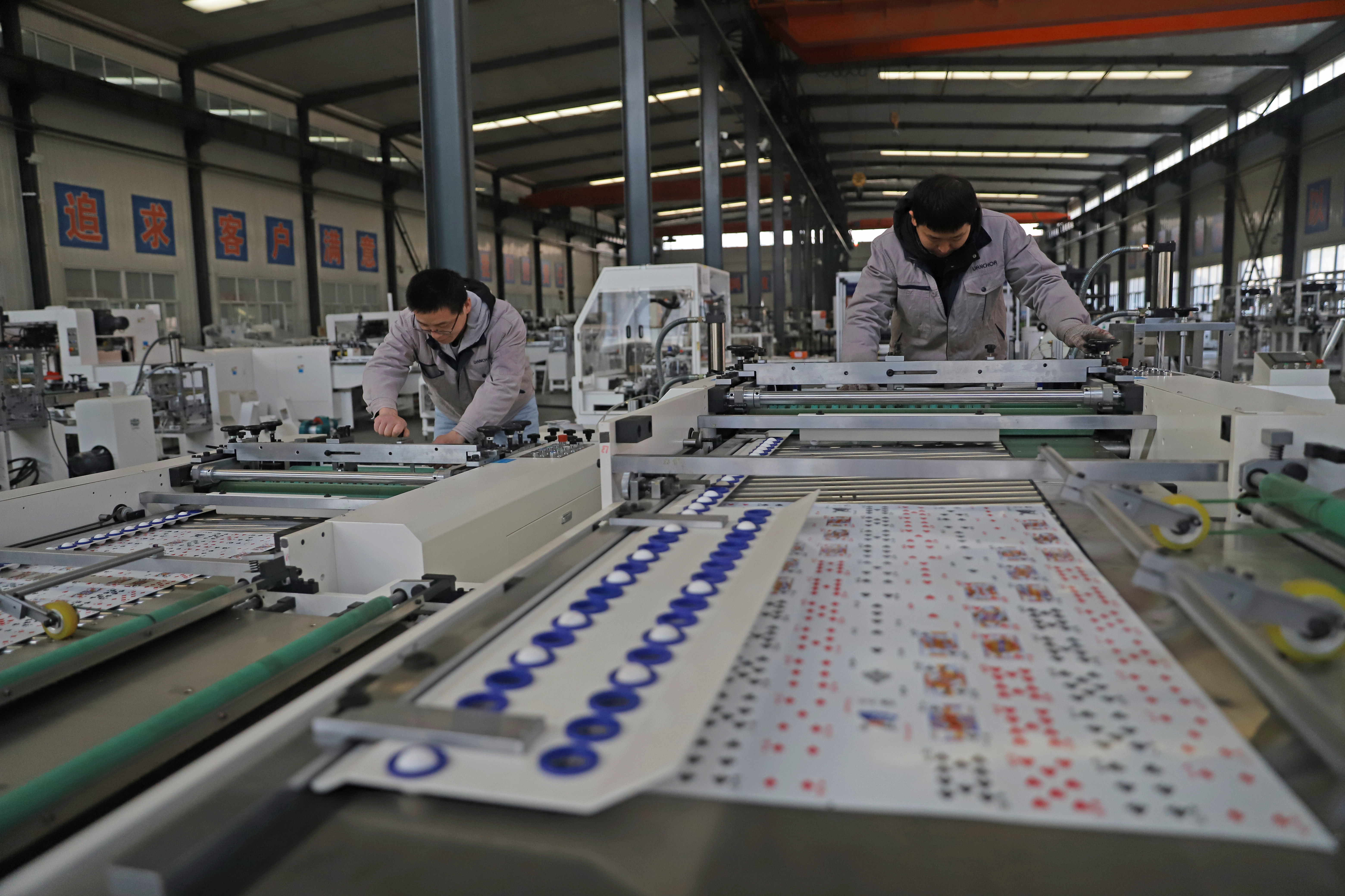 分切、切角、装盒、塑封……在唐山元创自动化科技股份有限公司,通过全自动智能卡片联线装备,只需0.7秒,我们熟悉的一副扑克牌就可以制作完成。