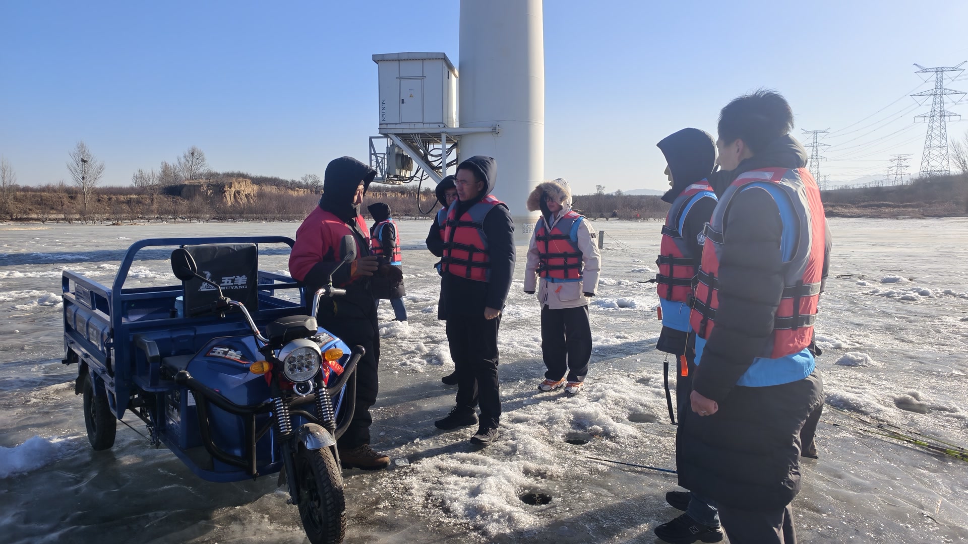 行动中,各成员构建起“陆空联动、全域覆盖”的巡查管控网络。地面巡查组沿水库岸线逐区域、地毯式排查冰面情况,对发现的冰面行车漂移、凿冰垂钓、滑冰游玩等危险行为人员,上前耐心劝阻,详细讲解自然冰面厚度不均、暗藏冰裂缝等安全隐患,普及冬季冰上安全知识;空中巡查组则操控无人机对偏远、隐蔽的冰面区域进行全方位巡查,通过高空喊话方式开展安全提示,确保管控无死角、宣传无盲区。针对人员集中的重点区域,管理处当天新增安装3块“冰面危险 请勿上冰”警示提示牌,进一步强化安全警示效果,提醒群众远离危险区域。