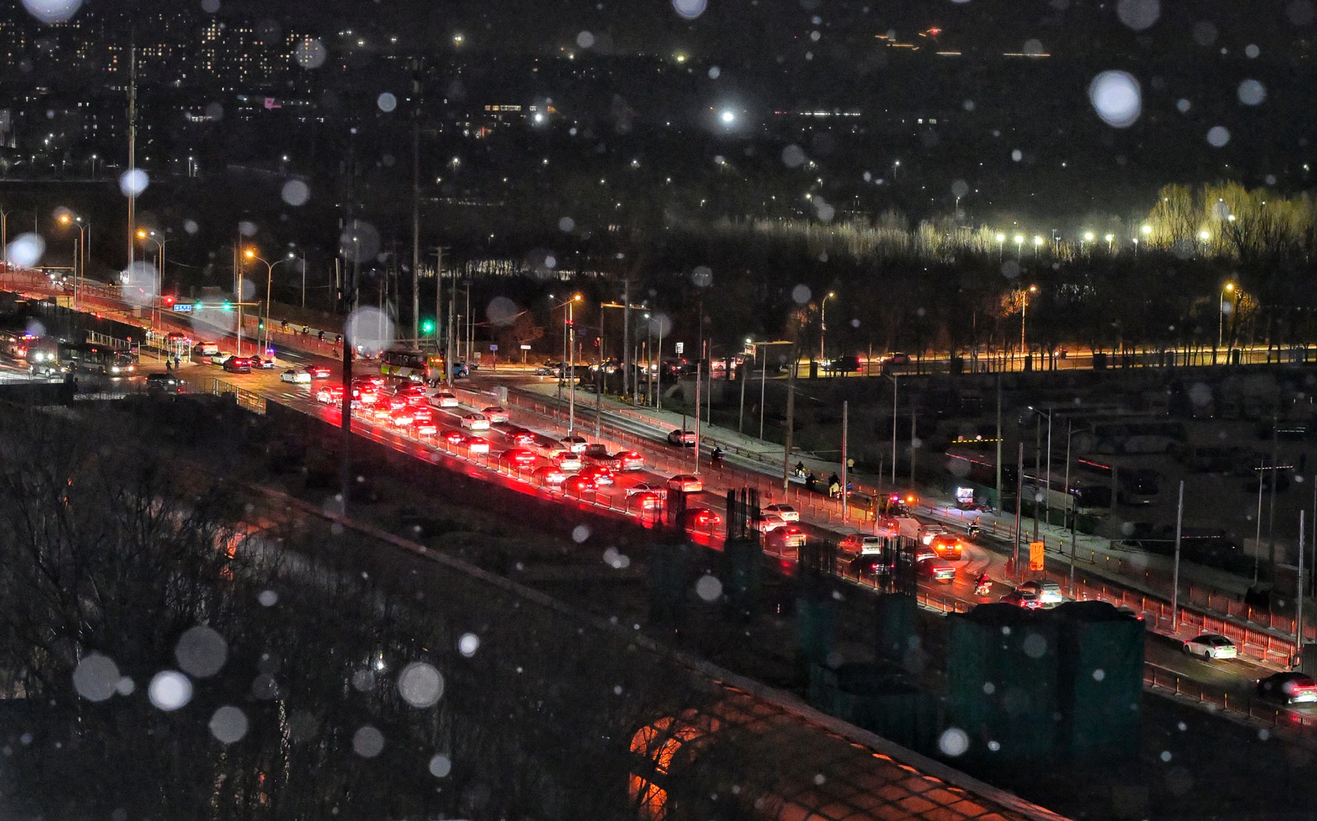 17日上午开始,门头沟、房山、石景山、丰台等地开始陆续出现降雪情况;下午至晚间,市区自西向东出现降雪。17日是周六,市区交通呈现休息日特点,环路、联络线等主要道路和景区、商圈周边车流量较大。受能见度降低、路面湿滑等因素影响,出行司机均主动降低行驶车速,路面交通事故也有所增多,对部分道路的交通运行造成一定影响。