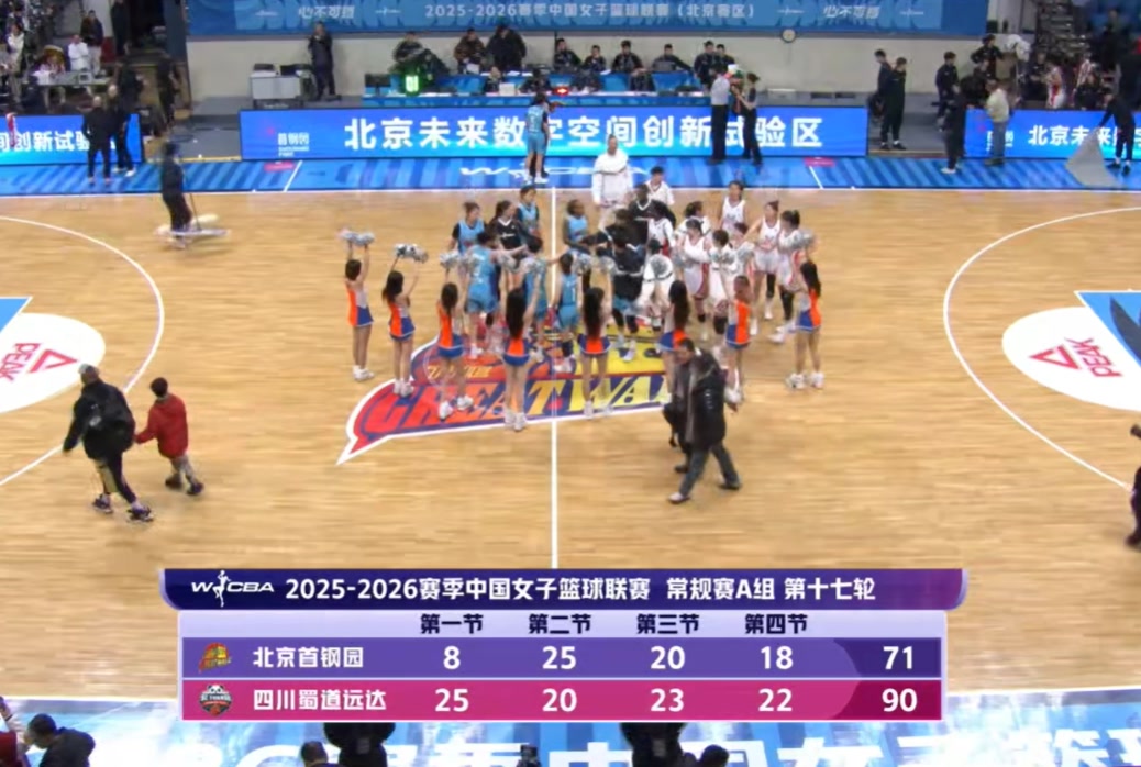 1月17日晚,2025至2026赛季WCBA第17轮,北京女篮在主场首钢篮球中心面对四川女篮,最终北京队71比90不敌对手。