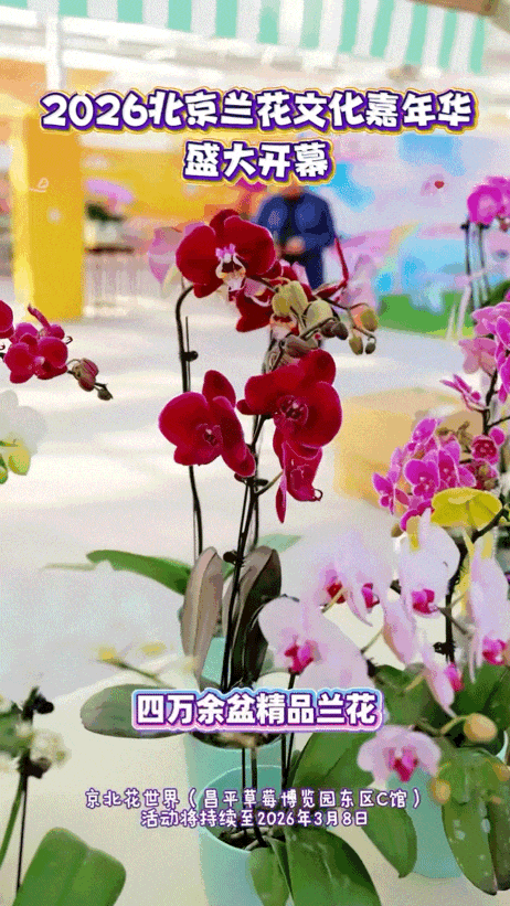 2026北京兰花文化嘉年华在京北花世界(昌平草莓博览园东区)持续进行中,活动以兰花文化为核心主题,打造集“赏、游、学、购”于一体的一站式花卉文化体验盛宴,为寒冬里的京城增添了一抹盎然春意。