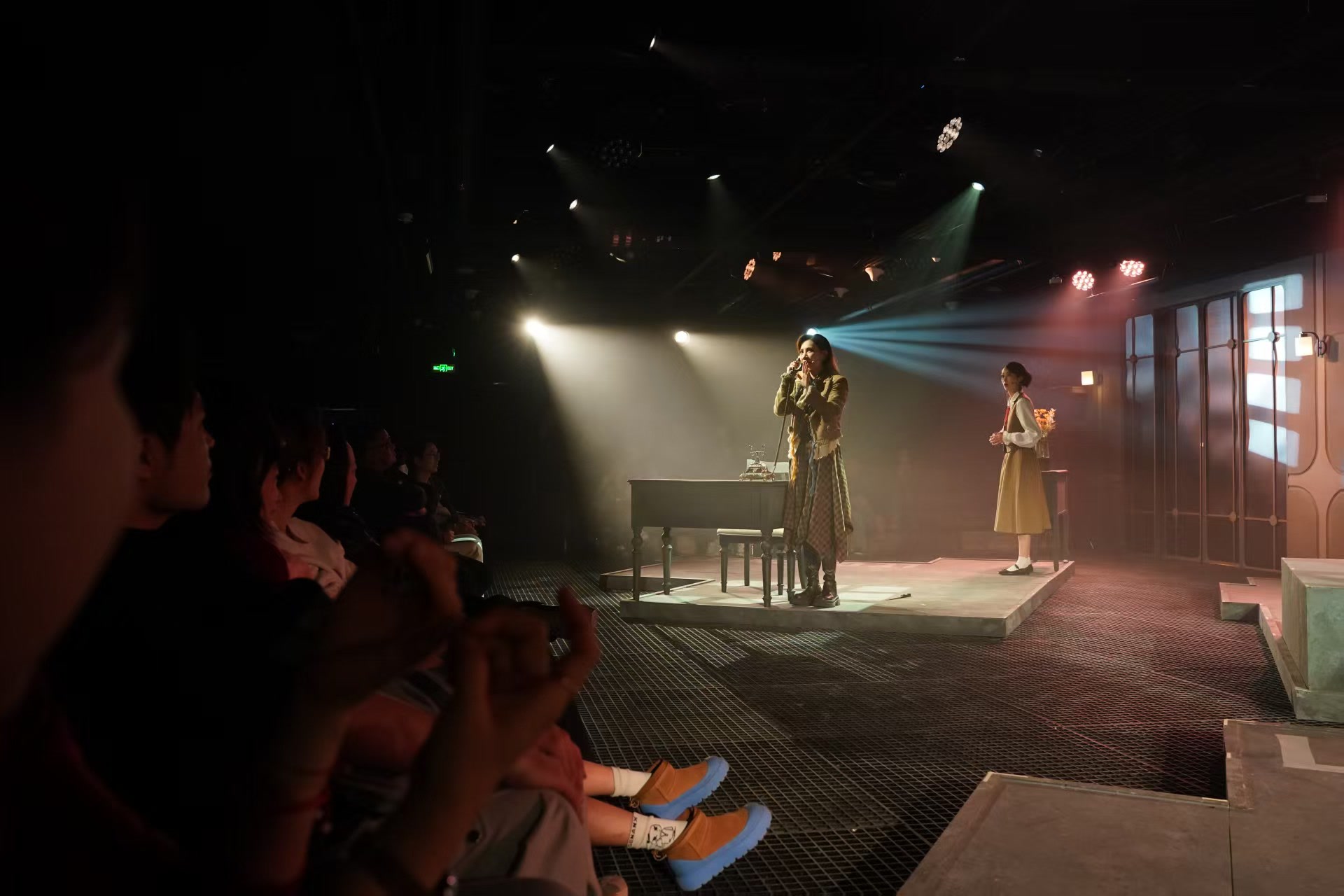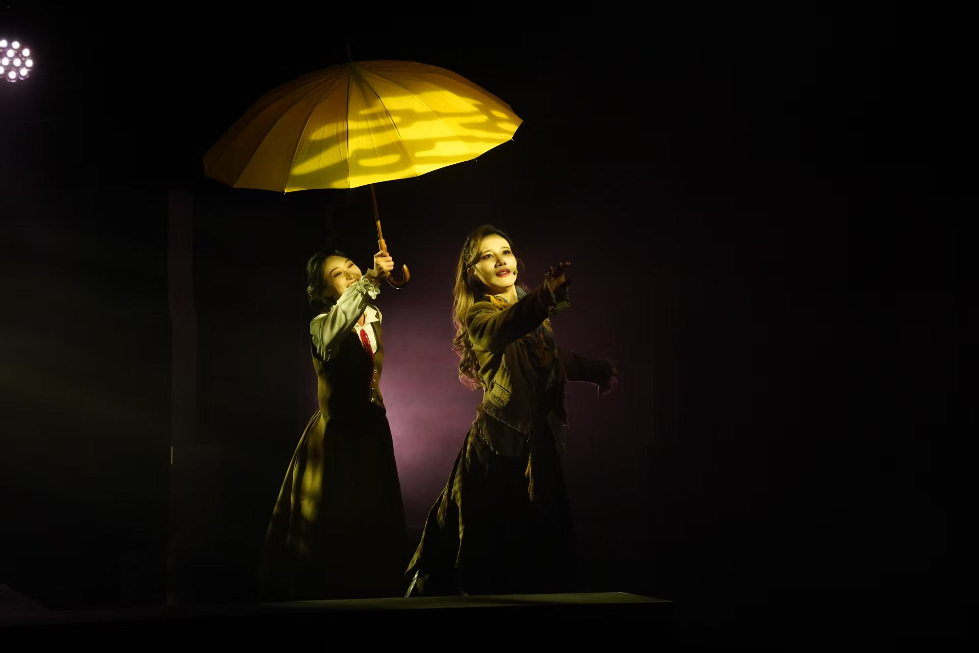 该剧对于灯光的运用大大增强了戏剧的张力。不同色彩的灯光,映照出不同角色的性格,也营造出场景气氛:柔和的粉色寓意着幸福的回忆,骤然闪烁的猩红则预告着惊悚的揭秘时刻。当谜底揭晓后,观众恍然大悟,原来剧作早已埋下了伏笔,罗伯特与那个“她”跌宕起伏、充满遗憾的爱情,也因这光影的烘托,更显余韵悠长。