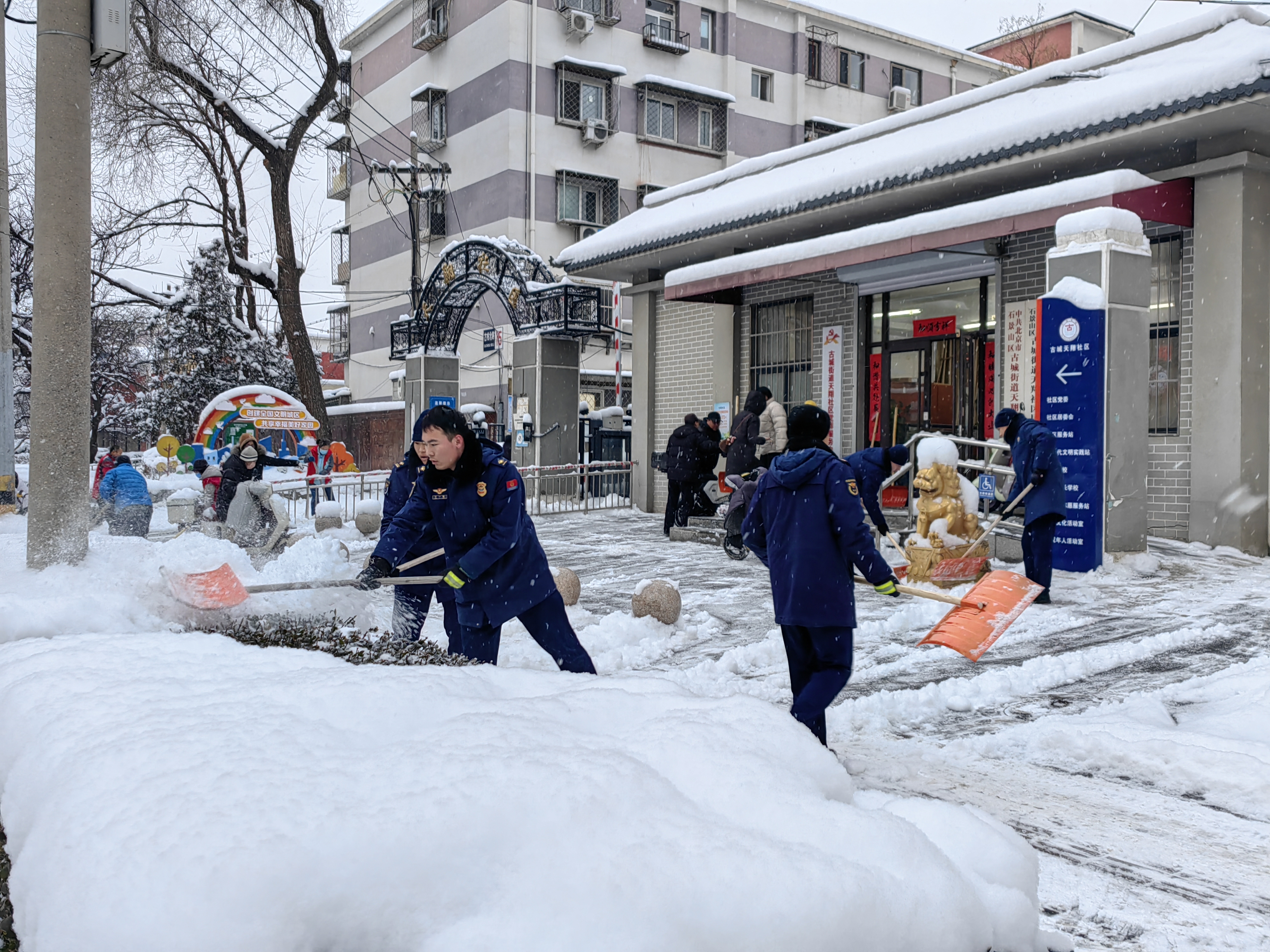 1月18日清晨,石景山区古城街道天翔社区内积雪覆盖。为确保居民安全出行,社区迅速组织了由老街坊志愿者、在职党员及社区工作者共同组成的清扫队伍开展扫雪铲冰。