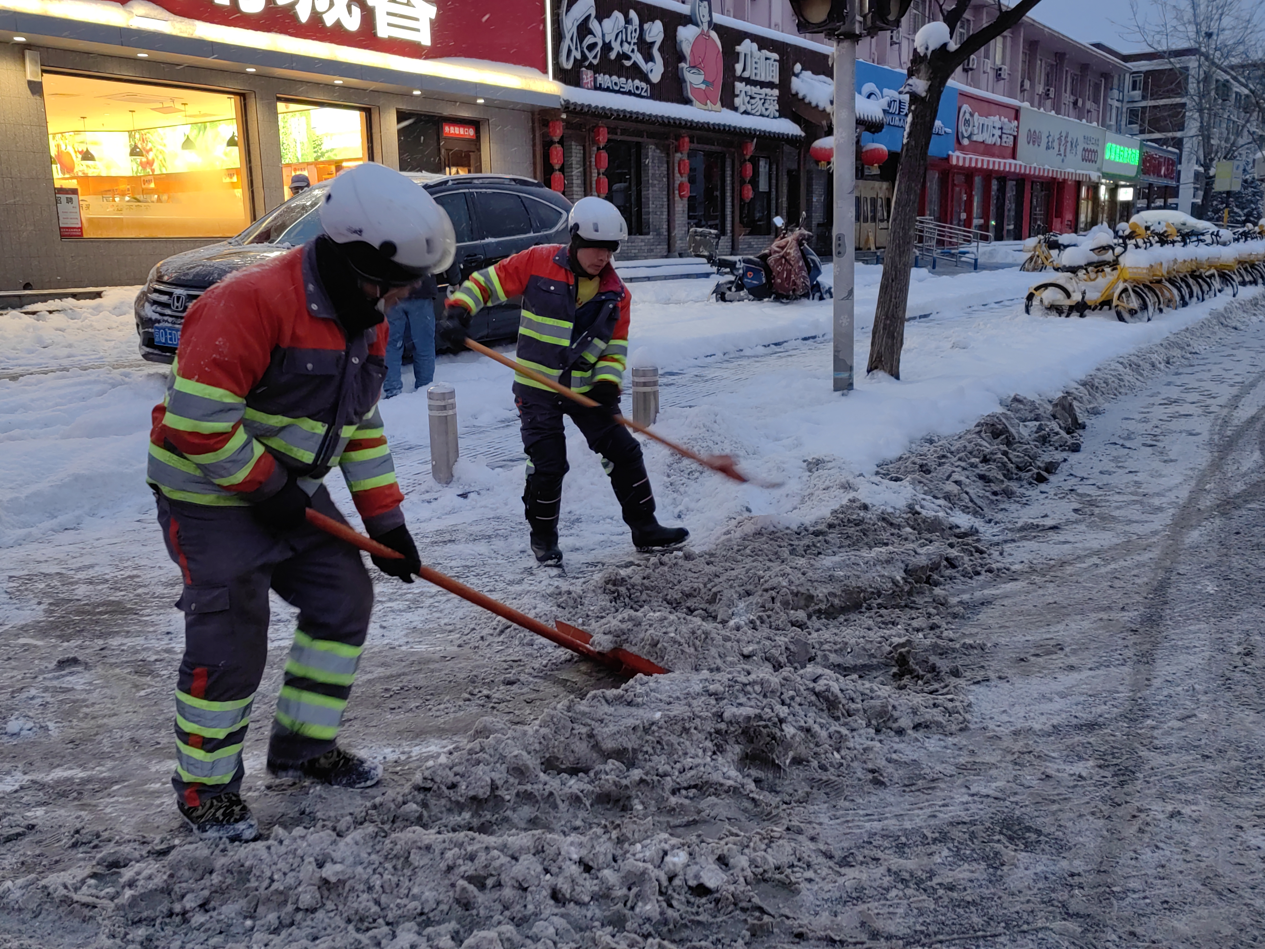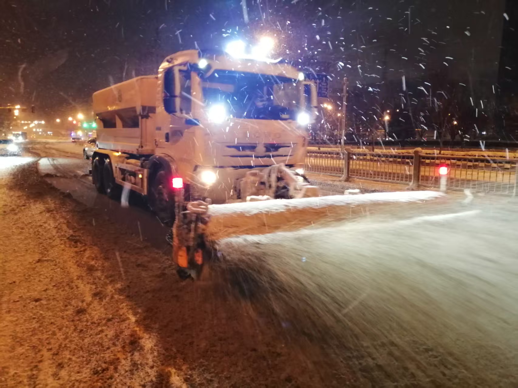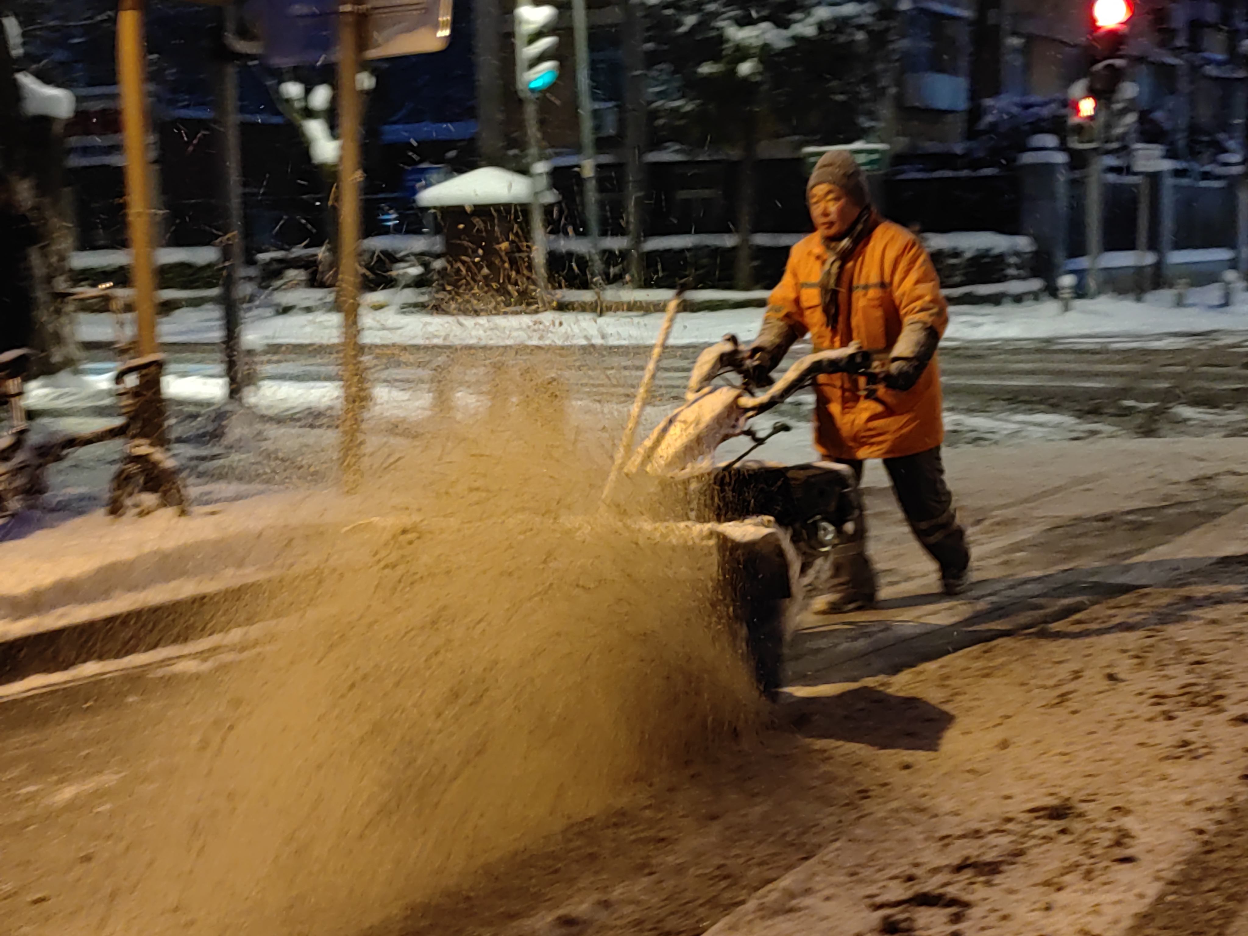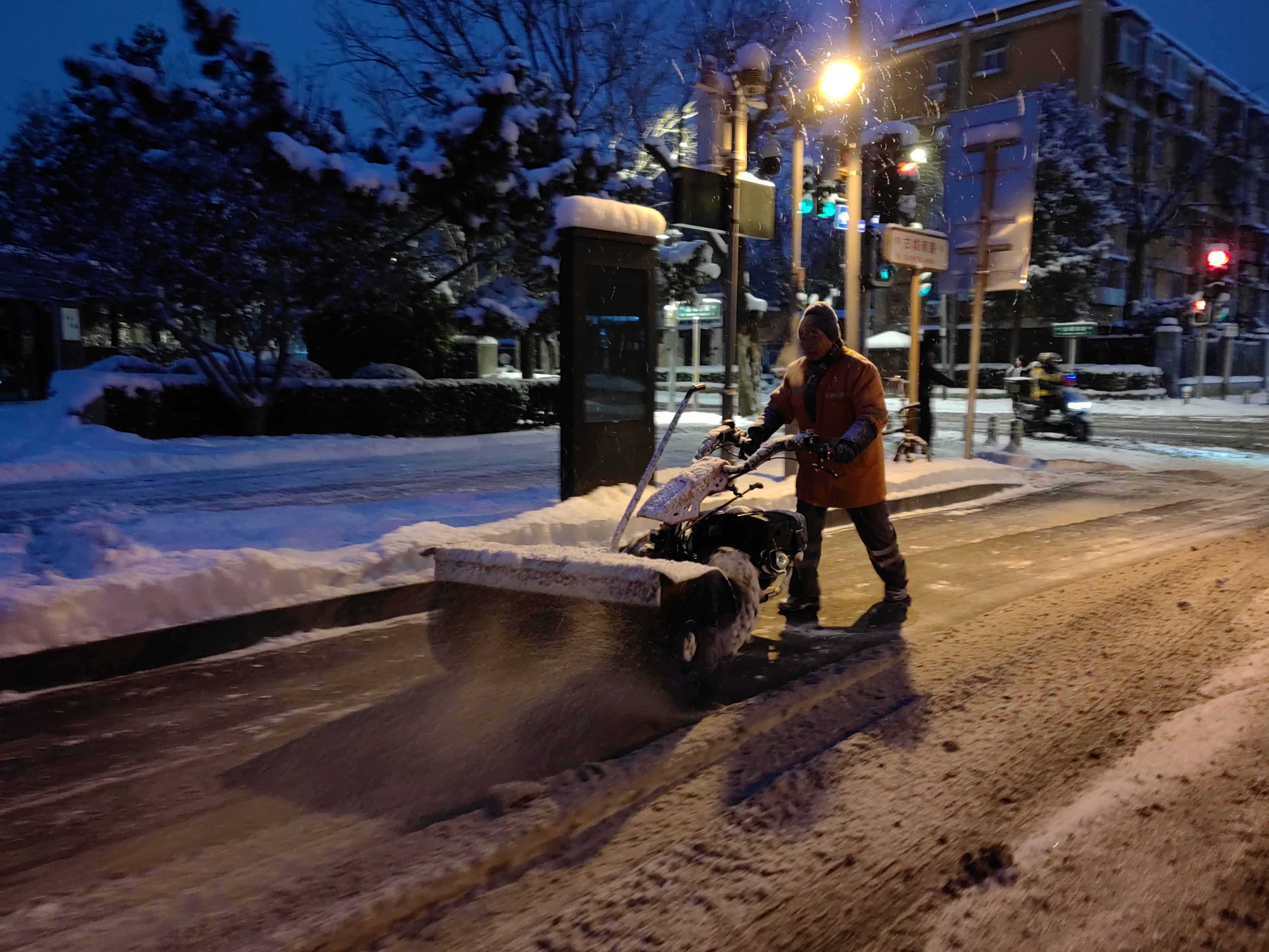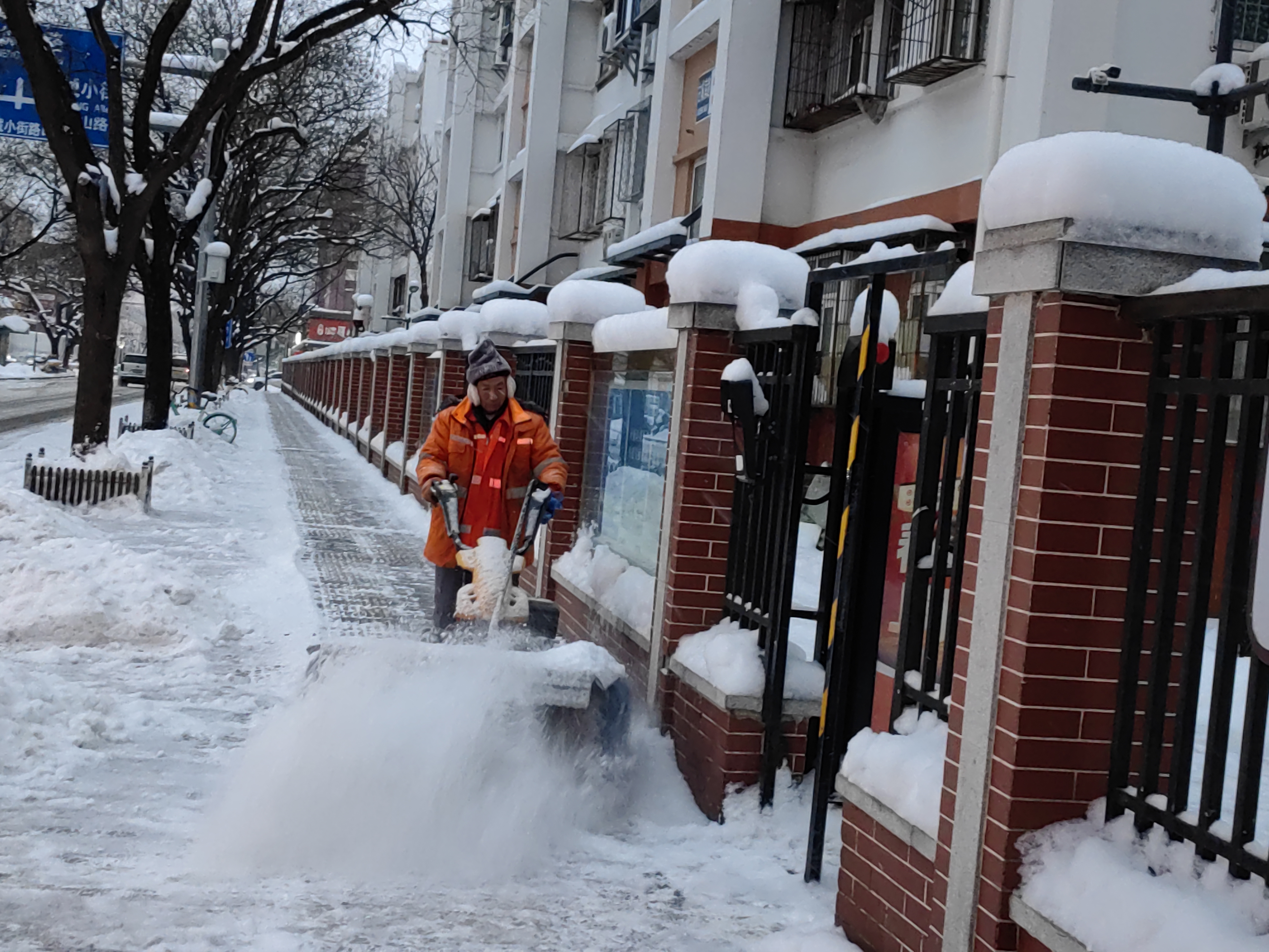 自降雪伊始,环卫部门采用“随降雪随作业、全方位立体化除雪”,陆续出动各类融雪除雪铲冰作业设备261台,以“人轮班、车不停”模式,按照“交通干线贯穿全区,逐步辐射全区城市道路”原则进行昼夜持续除雪作业,同时近800名保洁员开启人工扫雪,为市民出行开辟安全通道,全力保障城市平稳运行。